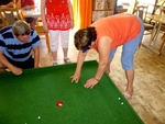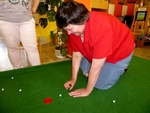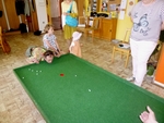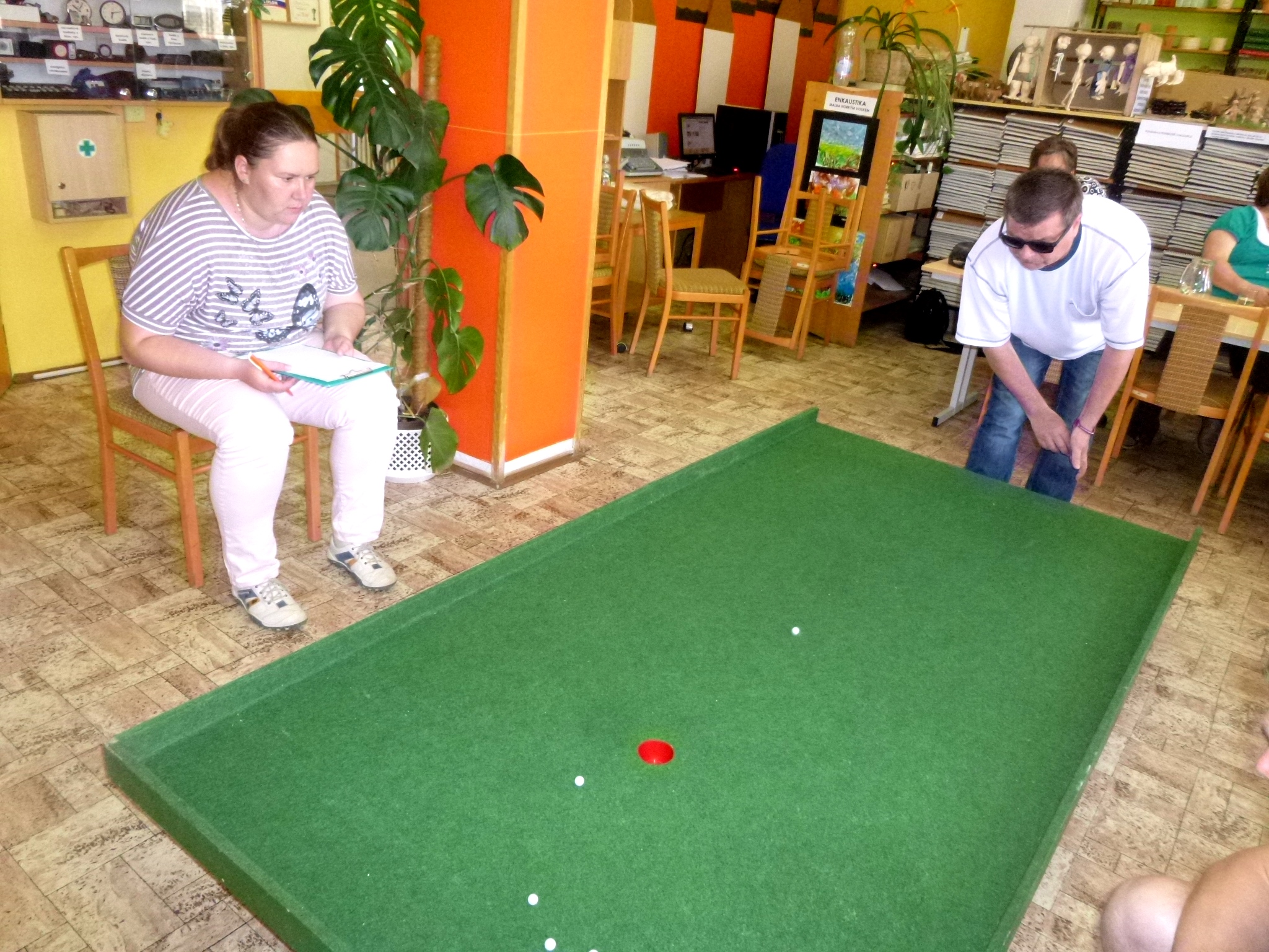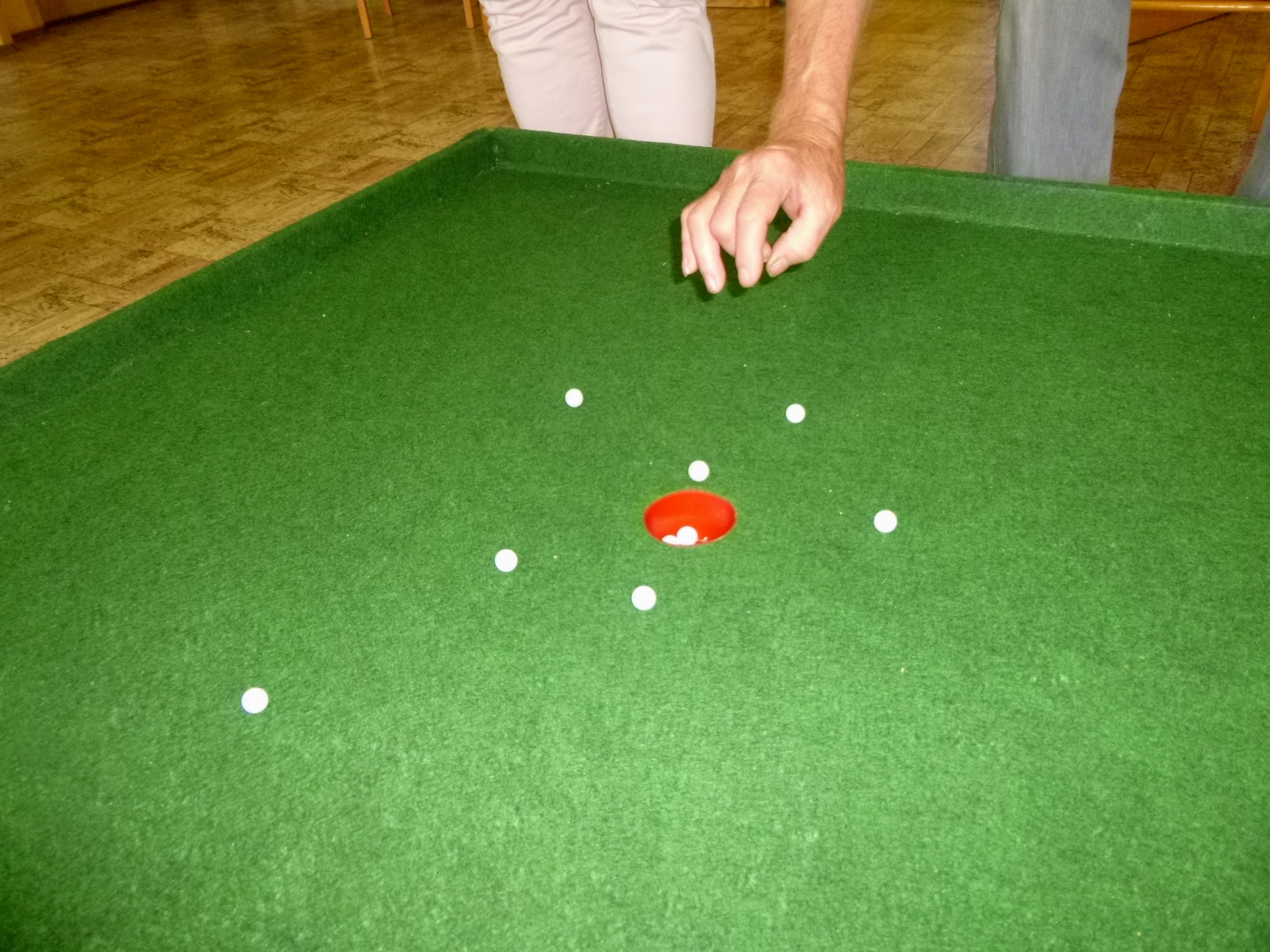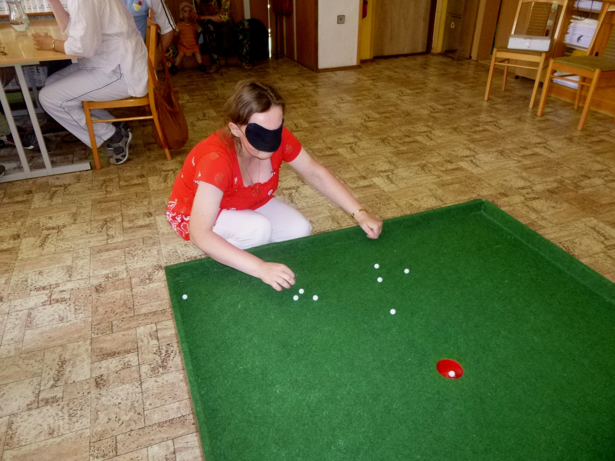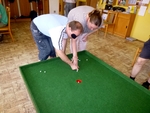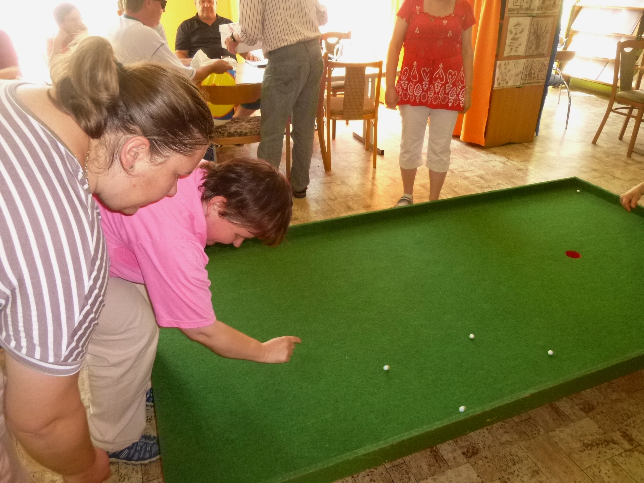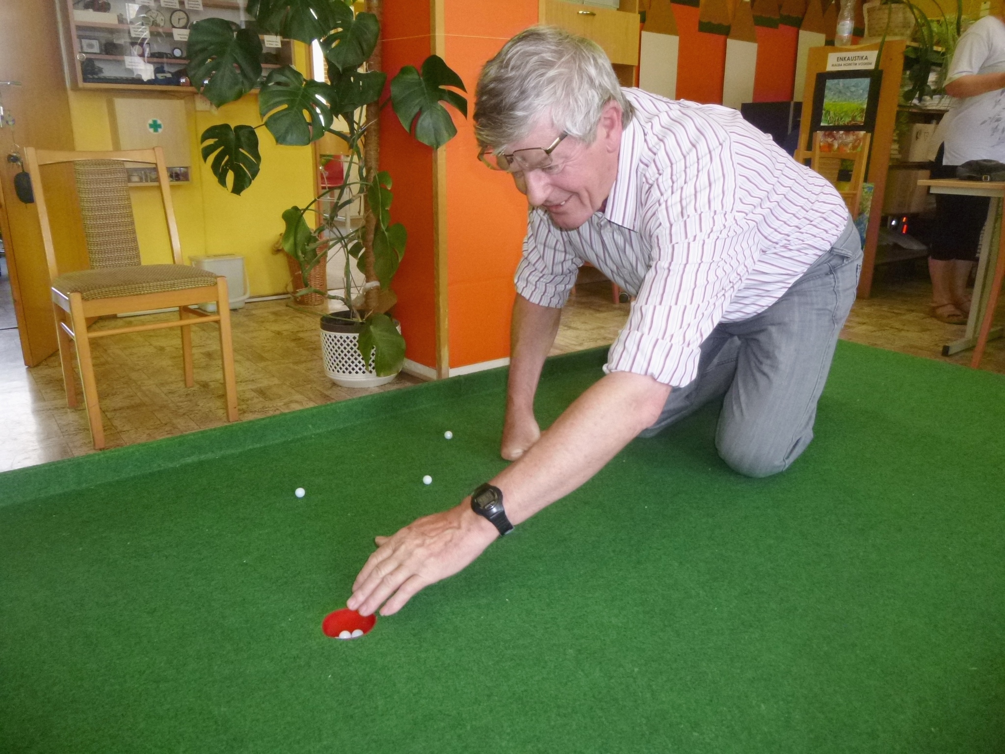 Takže my vyklidili z klubovny stoly, přitáhli plato rozměrů 2,5m x 1,8m, což je nízký stůl s mantinely potažený plátnem a s důlkem na crknkání kuliček. Sehnali jsme jenom skleněnky a doposlední chvíle tajili, jakouže ptákovinu jsme pro naše členy vymysleli. Ale žádná ptákovina to nebyla, to zas ne, byla to setsakramentská dřina, poslepu se orientovat v mikroprostru, udržet směr, pamatovat vzdálenost důlku a lehce cvrnkat. Občas napomáhal i nějaký lidský zdroj, který určoval směr, kudy kuličku poslat. Vítěze jsme nehledali, jenom si vyzkoušet něco nového, dokázat si že to jde a nezapoměnout se u toho pobavit.