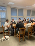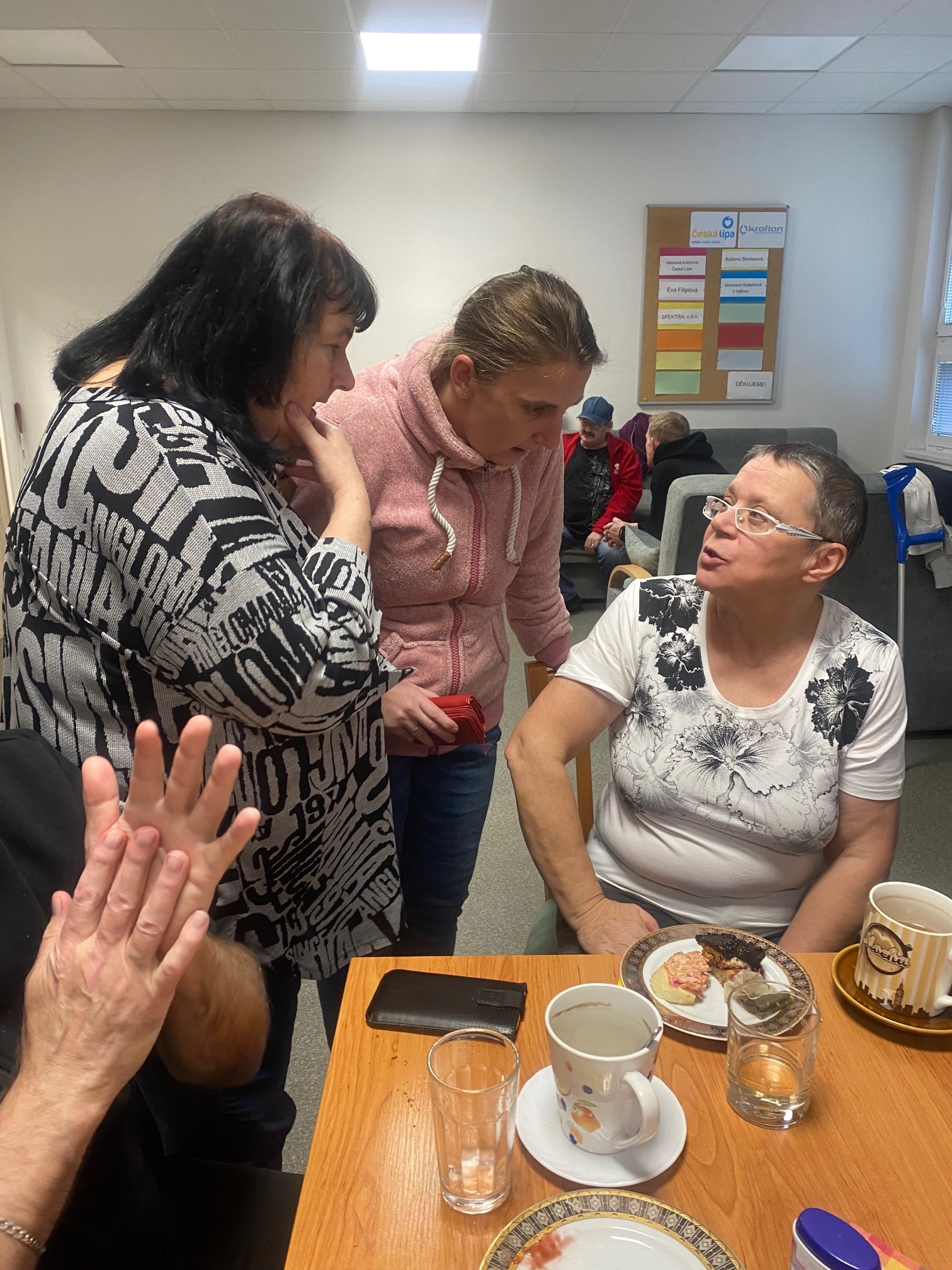 S novou knížkou MOJE ŘECKÁ MÁMA se k nám přijela pochlubit naše kamarádka Hanka Horák-Doskočilová. Nezapomněla si vyžádat kytaru, kterou jsme jí s nadšením připravili a zazpívala nám několik písniček, které někteří dobře známe z rekondičních pobytů v Lužických horách, kam jsme k Hance jezdívali. Zazpívala nám i jednu novou a velice pravdivou písničku z vlastní tvorby. Kromě nové knihy sebou přivezla povídkové knížky nejen pro děti, které také sama napsala. Vyprávěla nám, co jí vedlo k napsání této knihy a jak vše sepisovala. Jsou to příběhy jejího manžela Jirky, o jeho mamince a dětství. Také nám několik příběhů přečetla. Nakonec jsme si mohli knihy prohlédnout a kdo chtěl, tak i zakoupit a nechat podepsat přímo od autorky. Protože se nám povídání i zpívání moc líbilo, domluvili jsme se, že nás Hanka opět někdy navštíví. Už teď se moc těšíme a děkujeme za báječnou návštěvu.