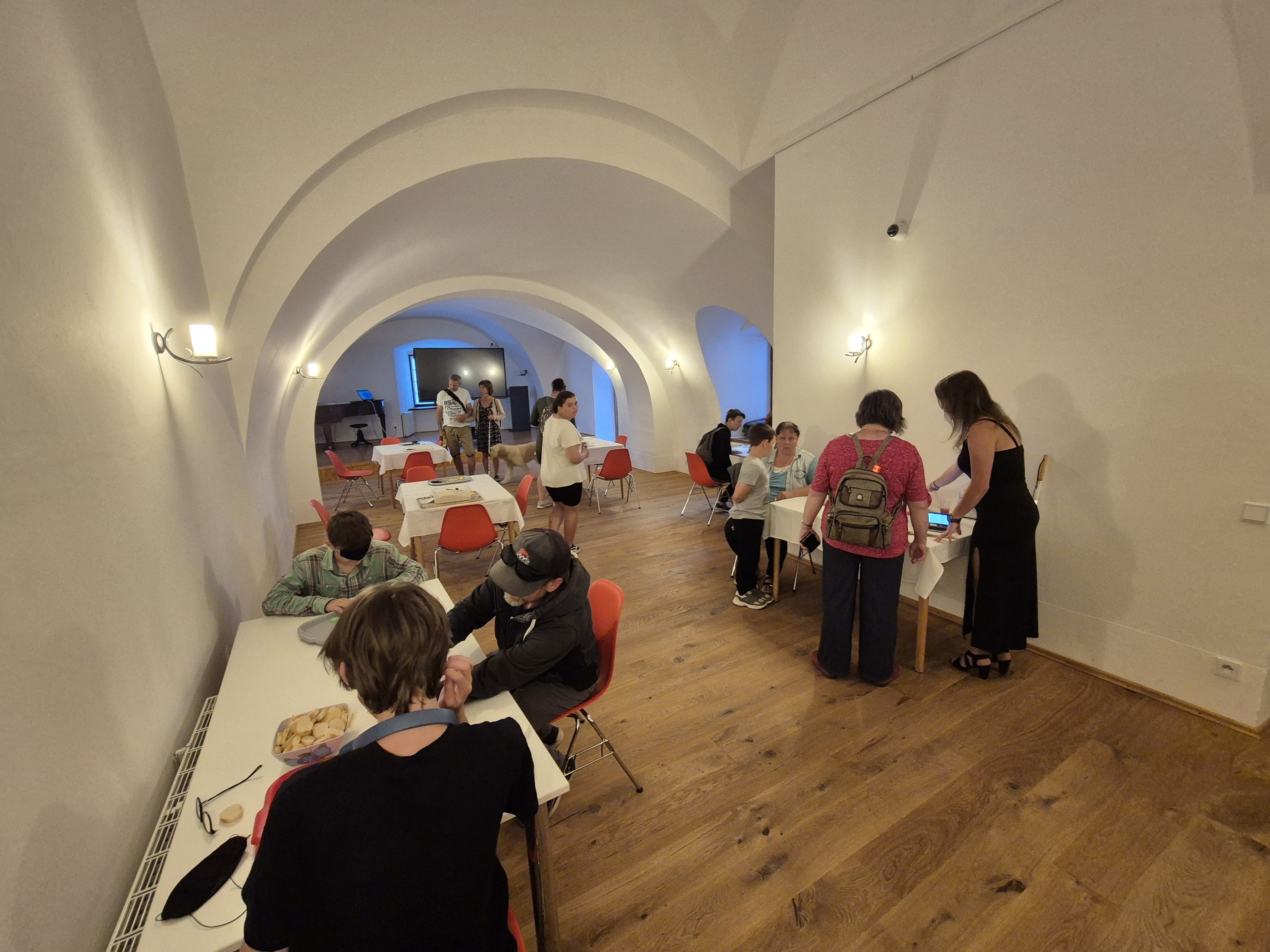 V pátek 13. června se uskutečnila Muzejní noc ve Vodní tvrzi v Jeseníku, kterou pořádalo Vlastivědné muzeum Jesenicka ve spolupráci s jesenickým pracovištěm Sjednocené organizace nevidomých a slabozrakých. Večer nabídl bohatý program. Od 18 do 19 h. nás nevidomá paní Libuše Skálová seznámila s prací vodicího psa a předvedla povely, které vodicí pes musí zvládat. Od 19 do 20 h. si zájemci mohli vyzkoušet aktivity bez kontroly zraku a optické a kompenzační pomůcky pro zrakově postižené. Nejvíce lákalo psaní Braillovým písmem na Pichtově psacím stroji, pomůcky pro zrakově postižené a různé hmatové hry. Velký ohlas měla také zvuková střelba. Od 20 do 21 h. mohli návštěvníci zhlédnout dokument o nevidomém sportovci Ondřeji Zmeškalovi „Tour de France ve tmě“ promítaný v Rytířském sále. V rámci Muzejní noci bylo možné navštívit „Byt ve tmě“ na nádvoří Vodní tvrze, kde si odvážlivci mohli vyzkoušet vybrat oblečení, boty a další módní doplňky. Vstupní aktivitou bylo hledání správného klíče k zámku a odemknutí bytu, uvnitř bylo možné vyzkoušet si úklid (zametení korkových špuntů), všechny aktivity bez kontroly zraku. Návštěvníkům byla také zdarma přístupná výstava hmatových soch vytvořených Axmanovou technikou modelování na téma hudby „Tak trochu jiný svět“ a herna pro rodiče s dětmi. Muzejní noc přilákala návštěvníky různého věku, od dětí po seniory. Dle ohlasů se akce líbila a splnila očekávání – přiblížit svět zrakově postižených veřejnosti.