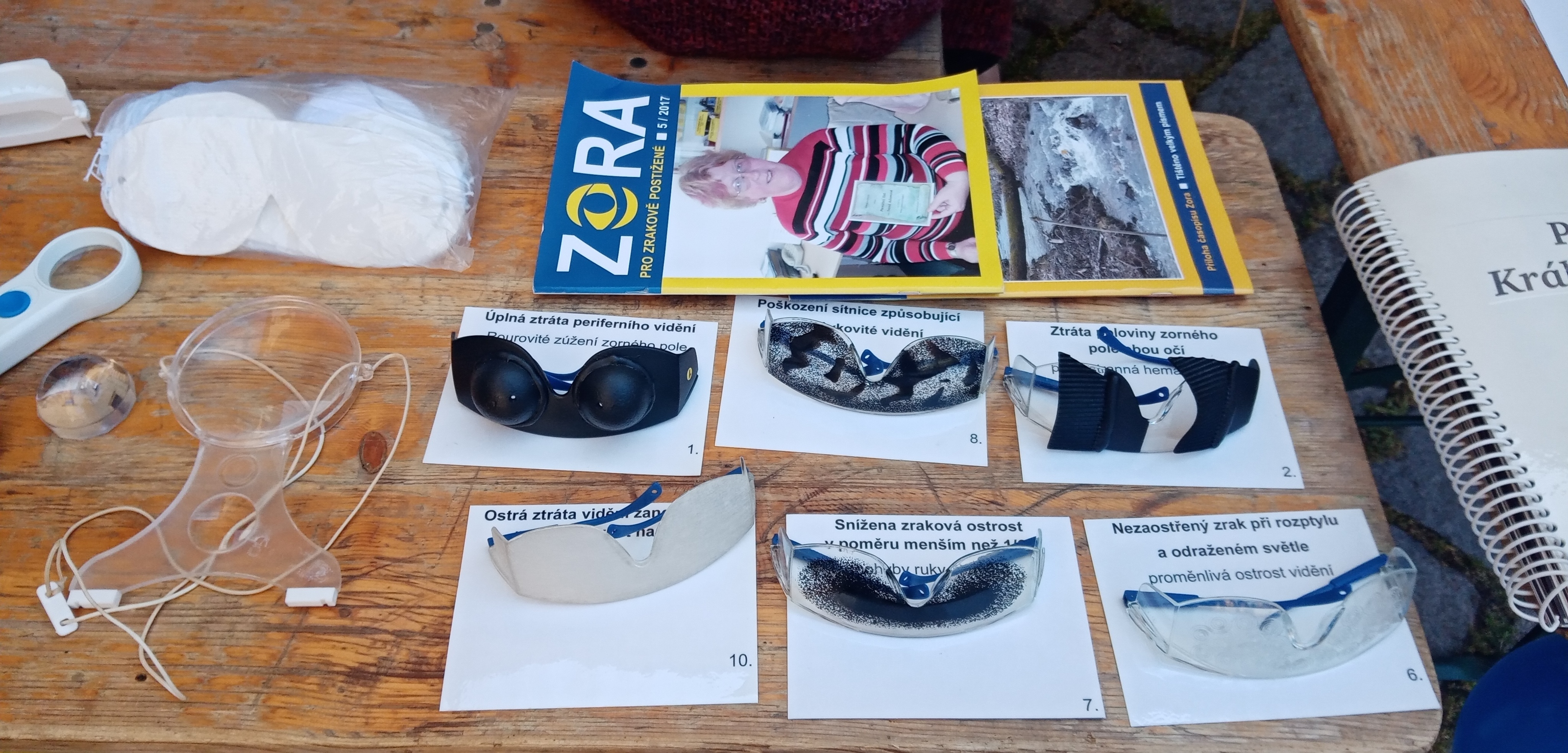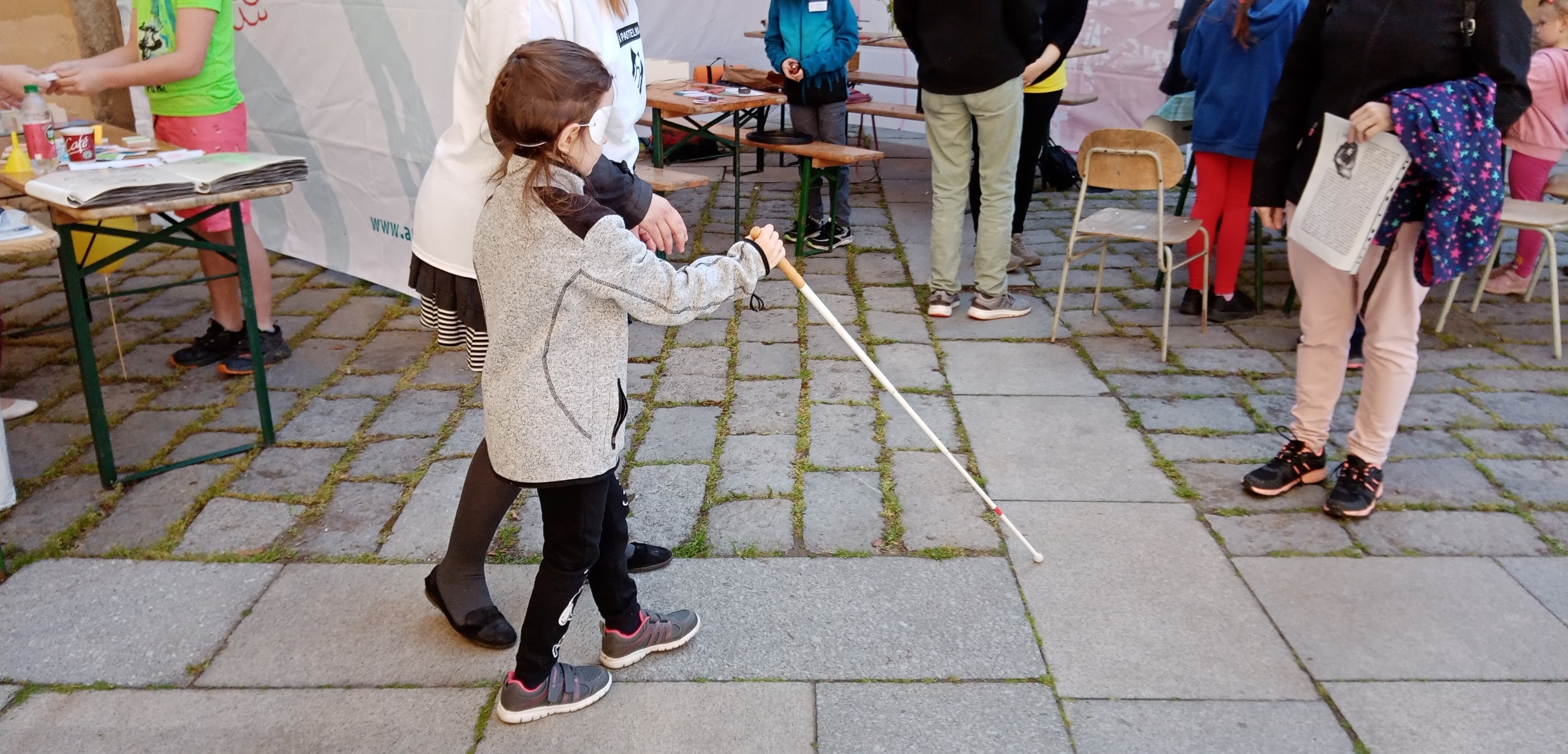 Nechyběla ani již tradiční chůze s bílou holí a zkouška psaní bodového písma. Děti za odměnu dostaly desky s informacemi o nás, s hádankou a dárkem. Těší nás, že jsme opět osvětlili dalším lidem naše zrakové omezení.
