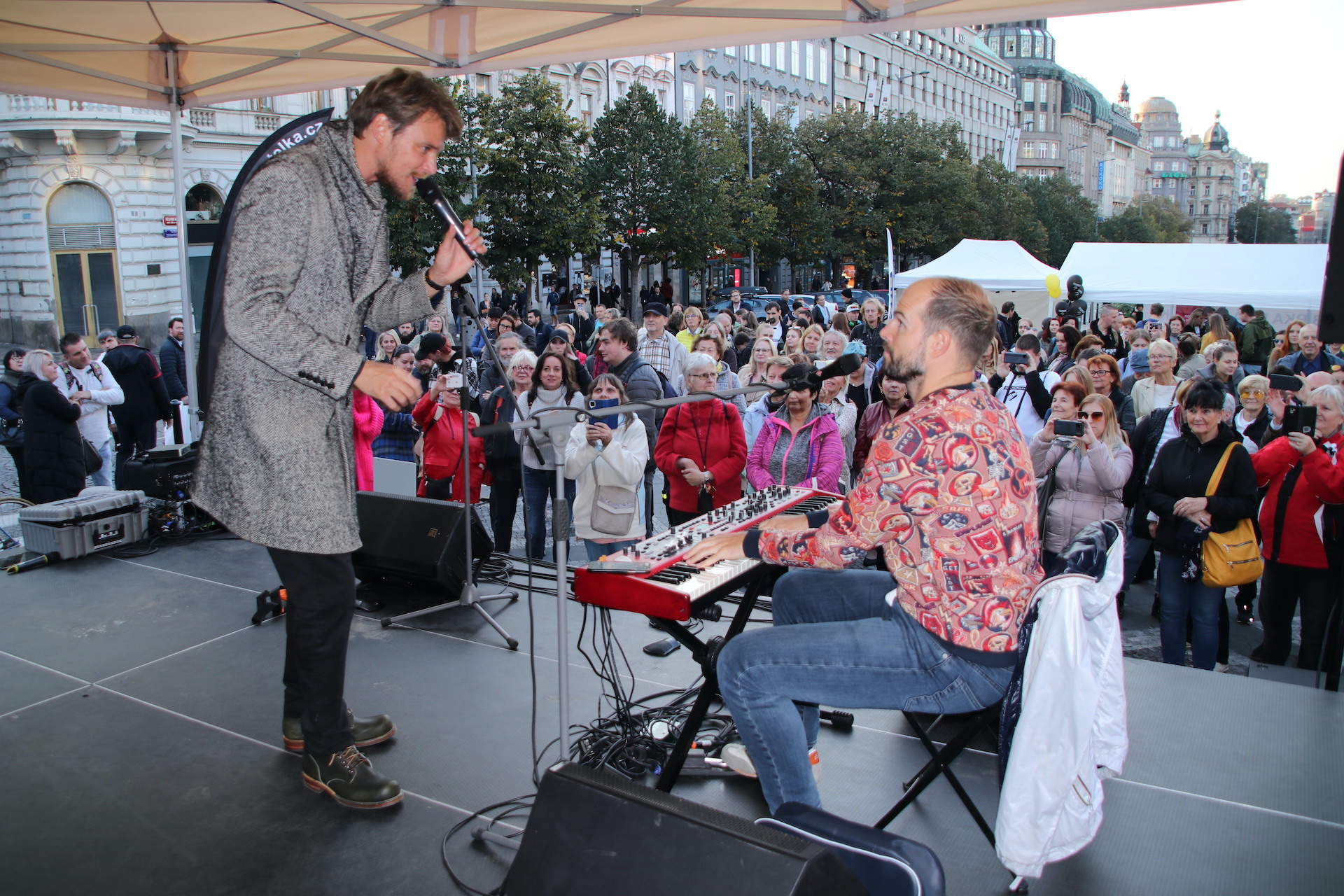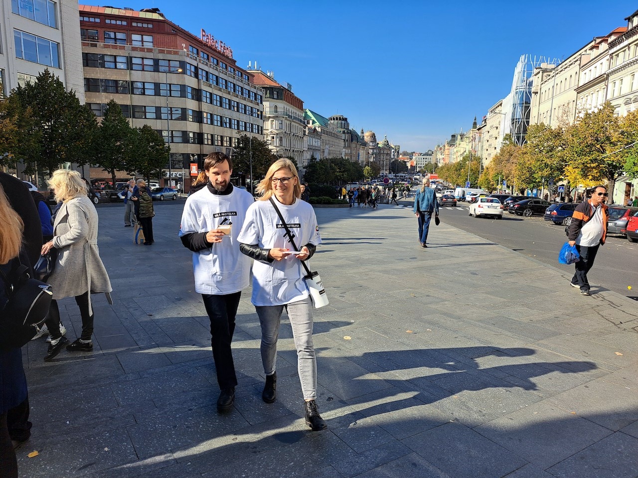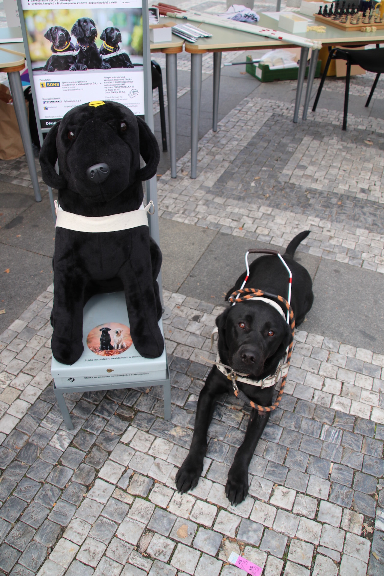Fyzická sbírka letos probíhala v ulicích po celé republice 10.-12. října a vybraná částka tentokrát již výrazně atakuje hranici 4 milionů Kč. Vrcholem těchto dnů bylo doprovodné odpoledne na Václavském náměstí v Praze, plné zajímavých hostů a představení pořadatelů sbírky. Diváci mohli vidět na živo naše vodicí psy, poslechnout si zajímavosti a příběhy o práci a smyslu pomoci nevidomým a slabozrakým. O zábavu se postarali hudebníci z The Braill Band, irské tance předvedla taneční skupina Coiscéim Prague a svým neobvyklým vystoupením podpořil sbírku i skvělý zpěvák a herec Vojtěch Dyk v doprovodu známého českého dabéra a vynikajícího pianisty Jana Maxiána.