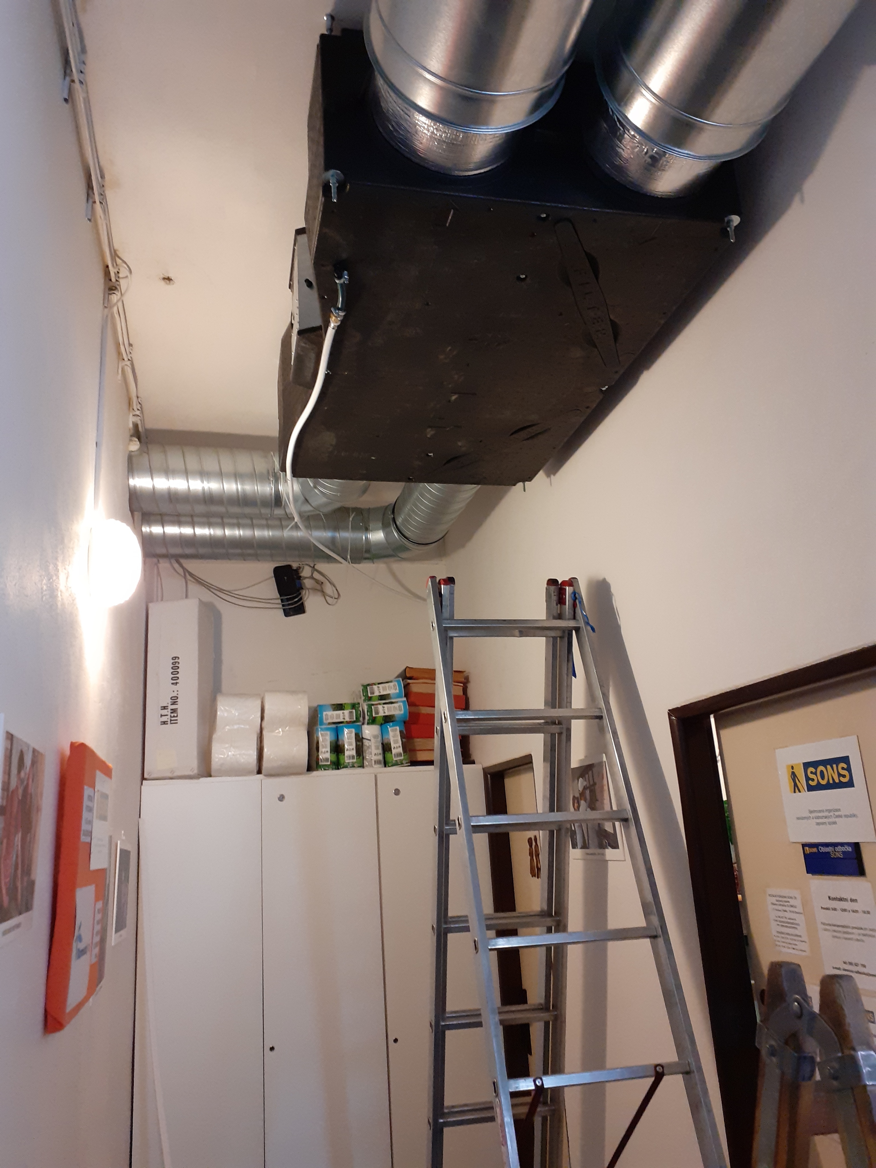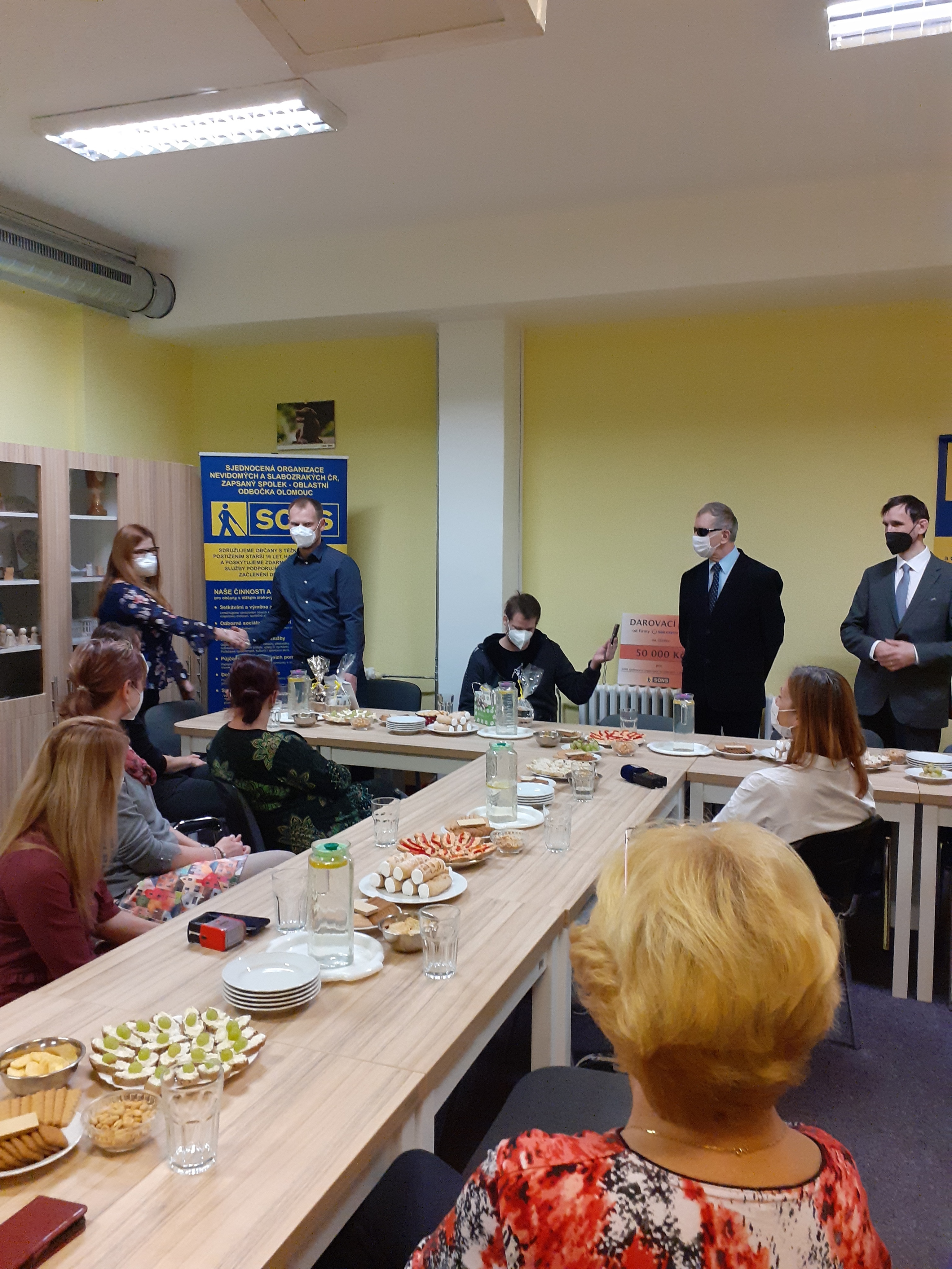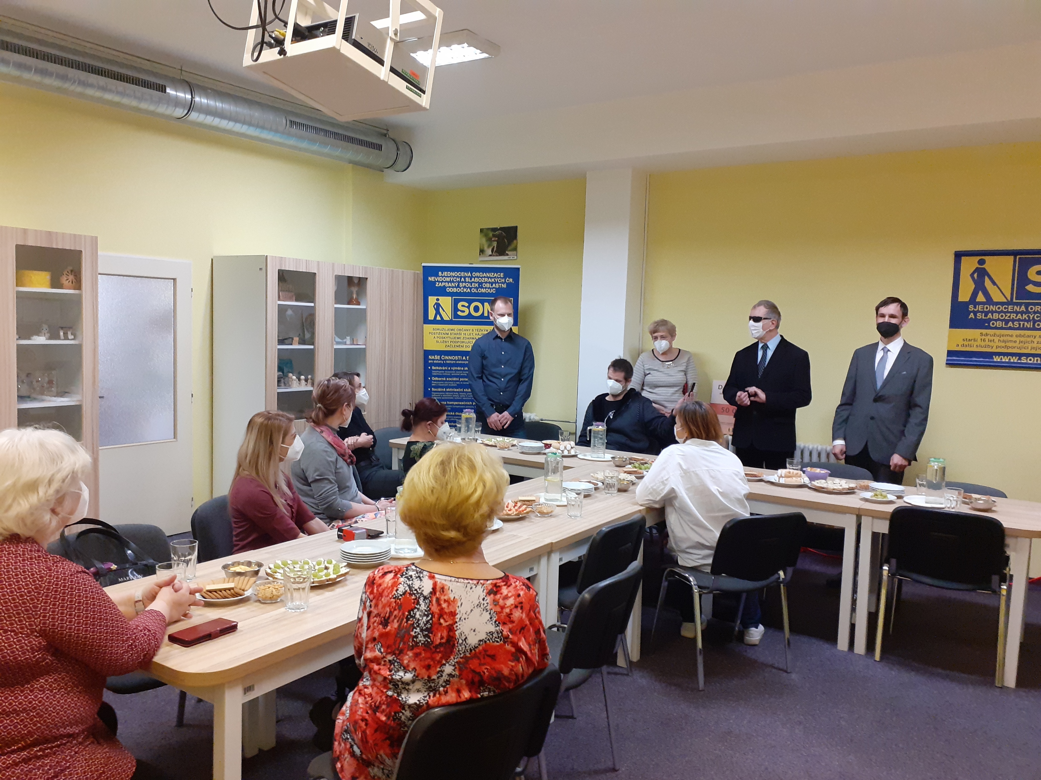 Ve čtvrtek 3. března 2022 jsme tedy v prostorách odbočky uspořádali malou slavnost při příležitosti spuštění nové vzduchotechnické jednotky. Pozvání na akci přijali významní dárci pan Michal Simon a zástupce firmy SGB Czech Trafo pan Jiří Janeček, dále prezident Sjednocené organizace nevidomých a slabozrakých České republiky, zapsaného spolku