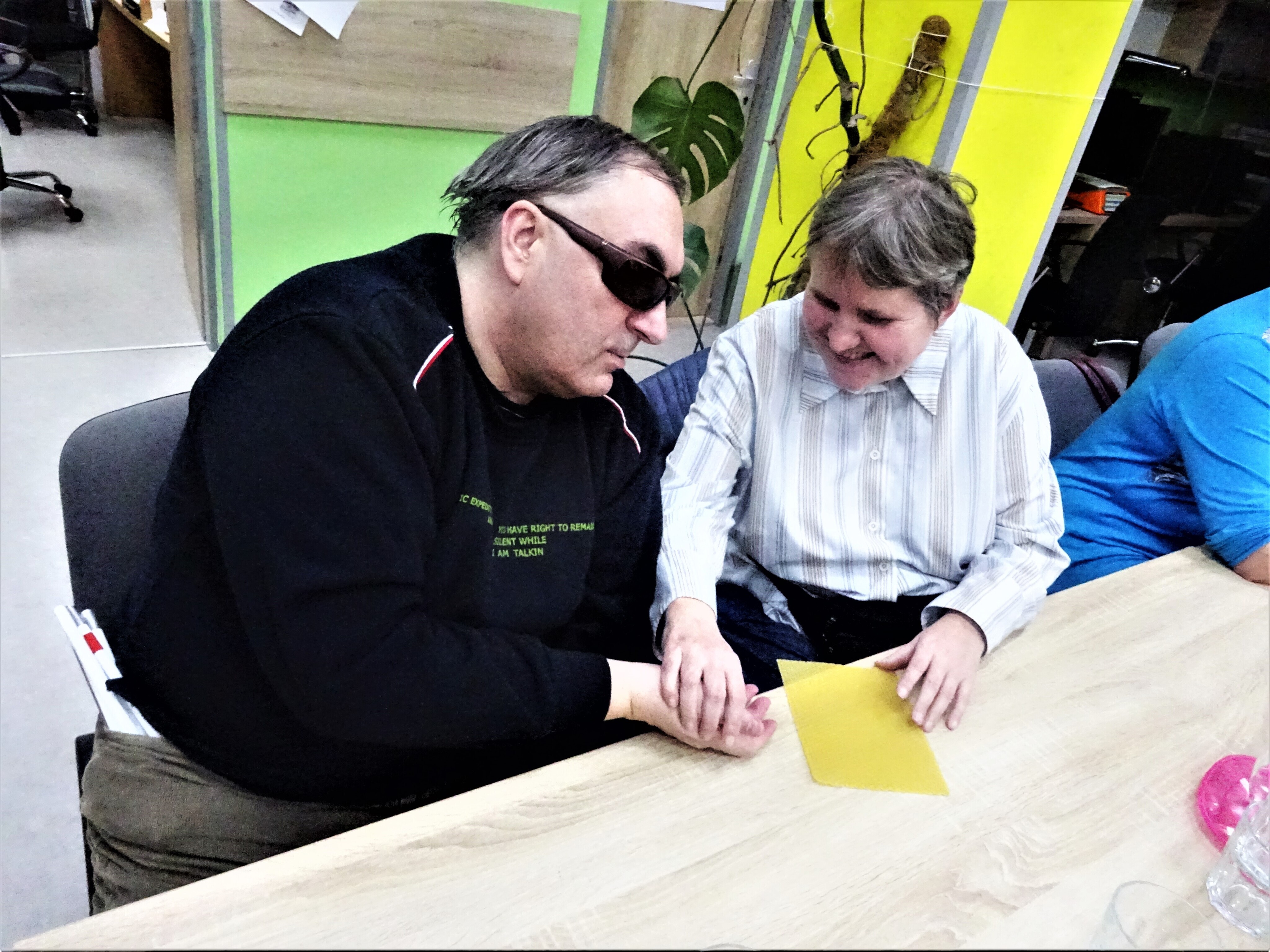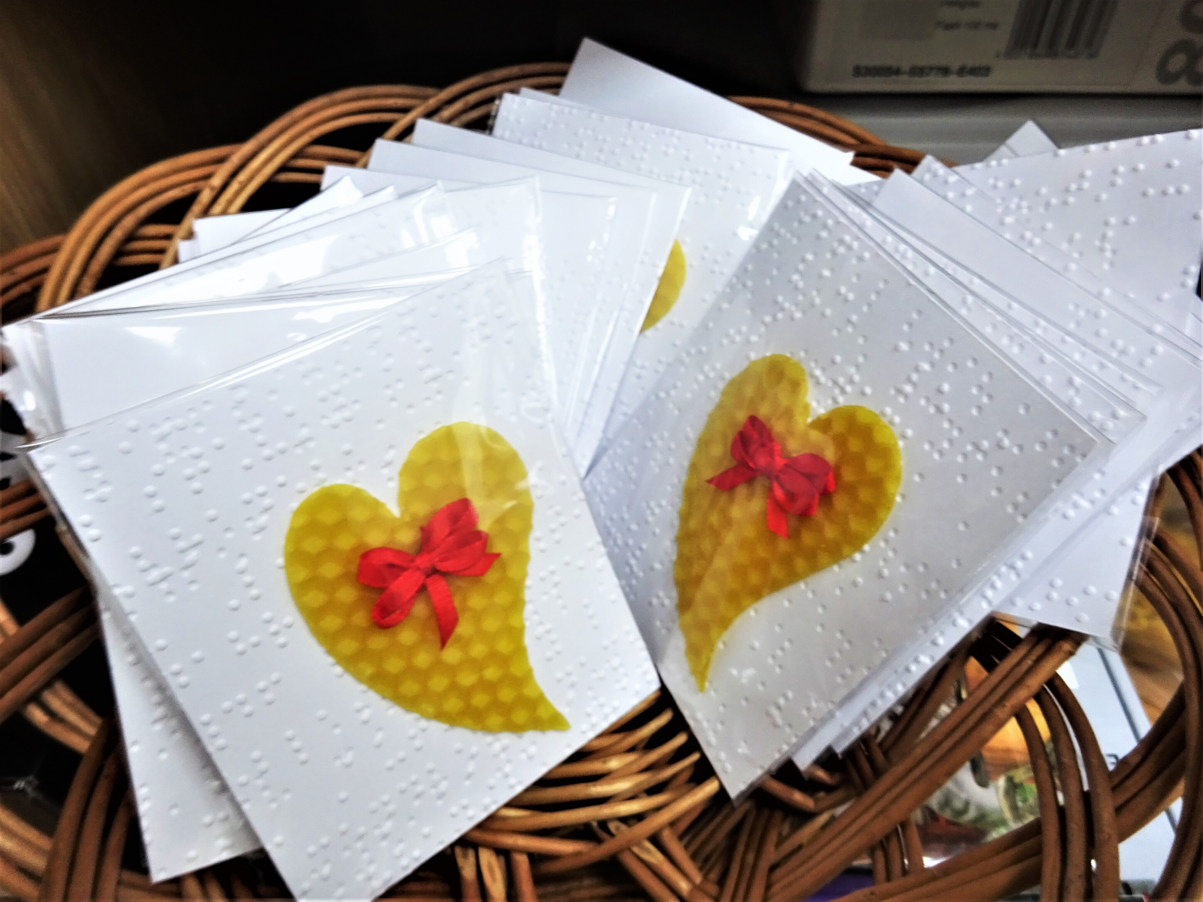 A protože další den byl svátek sv. Valentýna a protože máme všechny rády, nechyběly ani tématické Valentýnky - voskové srdíčko z mezistěn na Braillském papíře.