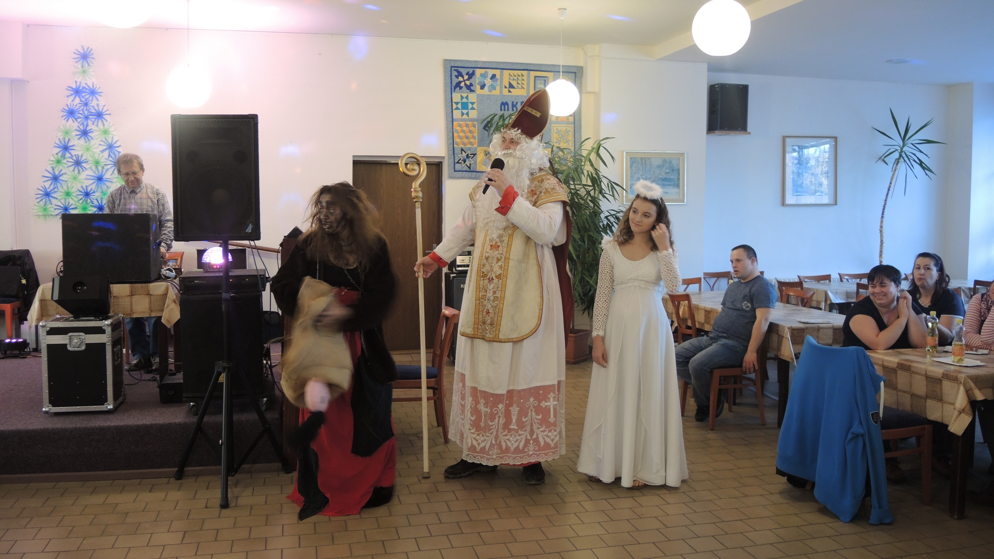 Součástí tradičního odpoledne bylo vystoupení samotných handicapovaných dětí se svými pedagogy či rodiči. Vždy jsme svědky krásné podívané, nechybí roztomilá vystoupení. Slzičky ukápnou nejen samotným účinkujícím, ale i přítomným rodičům a prarodičům. Poté již naděloval Mikuláš doprovázen čerty a anděly.