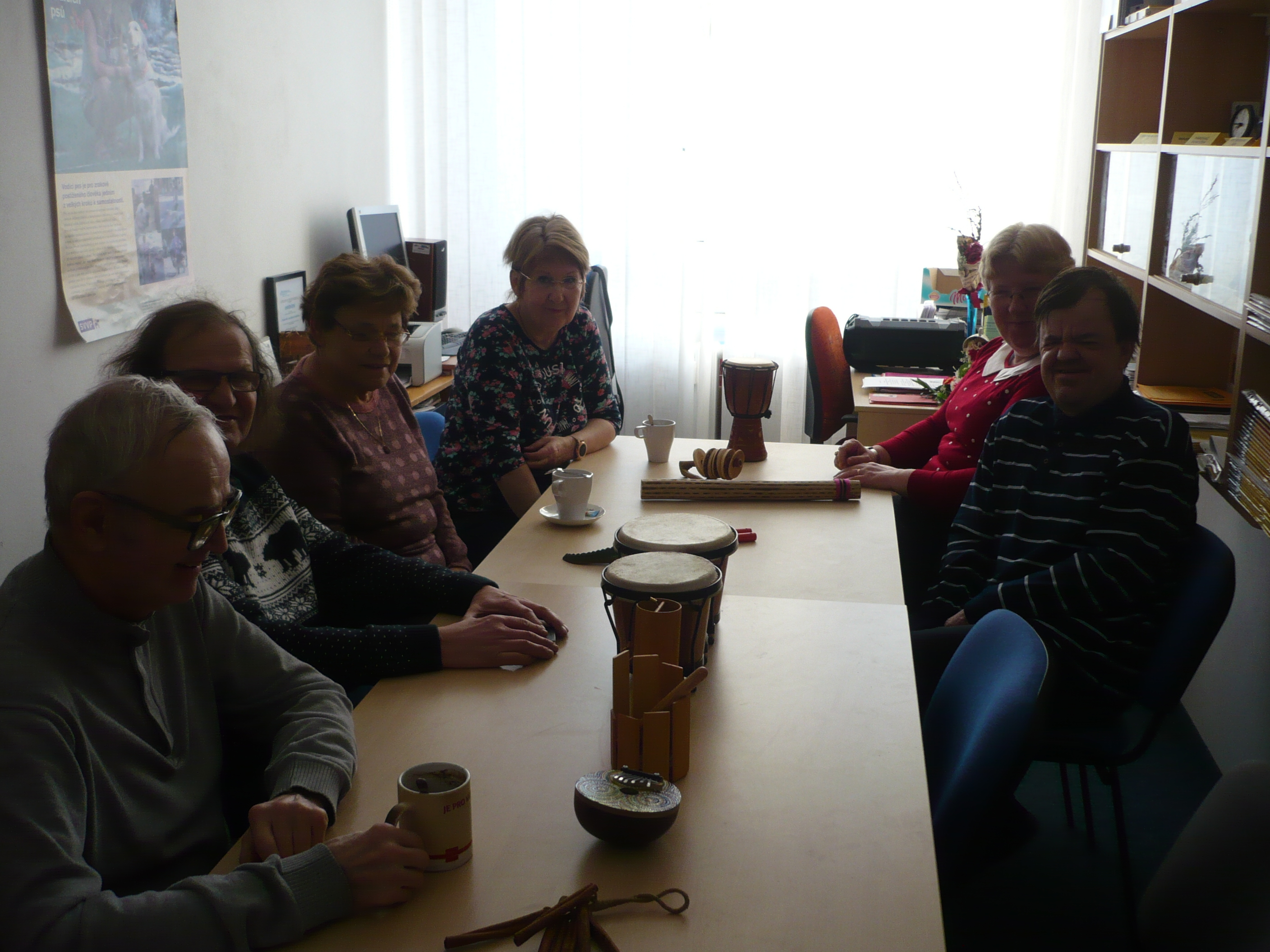 16. 1. proběhla první lekce muzikoterapie. Účastníci se měli možnost seznámit s rozličnými hudebními nástroji a zapojit se do krátké improvizace. Na závěr lekce proběhla relaxace za doprovodu meditační hudby. Z akce přinášíme fotografii a těšíme se na opakování.