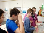 V listopadu jsme uskutečnili 5 besed, během kterých jsme skoro 200 studentů seznámily se životem za hustou mlhou. Největší akci jsme měli na základní škole v Brně, kde jsme pro 100 páťáků uspořádali Výukový den o životě nevidomých. Na čtyřech stanovištích jsme žáky seznámili, jak nevidomí a zrakově postižení zvládají běžný život, kdo jim pomáhá, co všechno se musí naučit a hlavně, jak takto postiženým lidem na ulici pomoci.