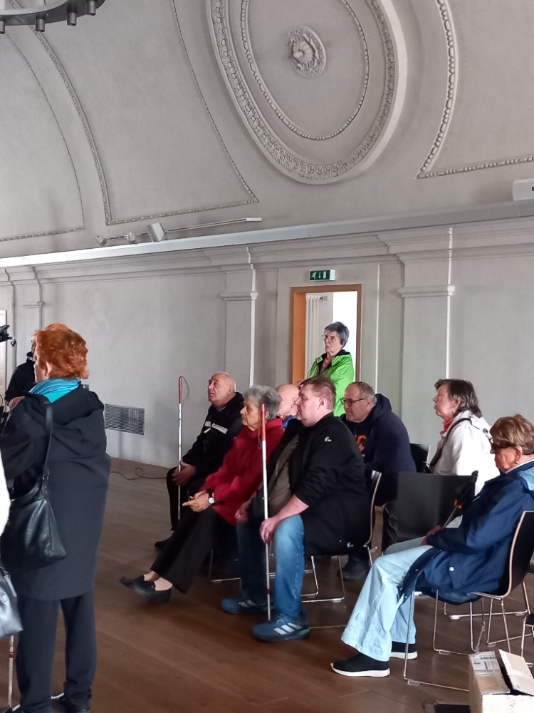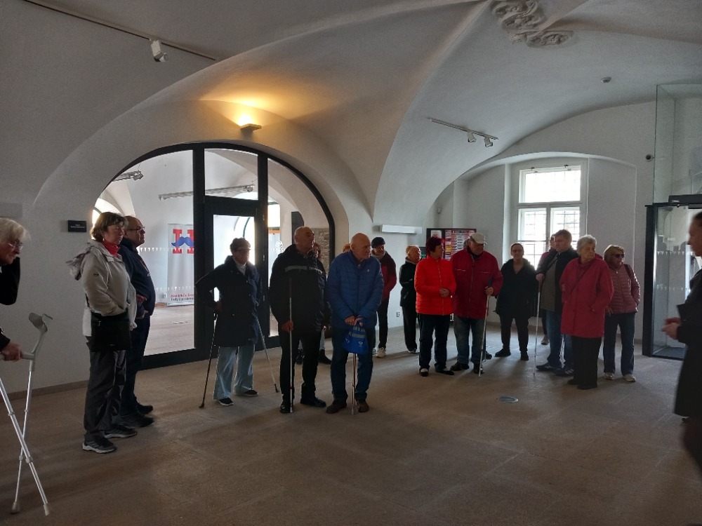 Paní průvodkyně naší více než dvacetičlennou výpravu provedla krásnými prostory, povídala o historii daleké i nedávné a my jsme vzpomínali, jak v těch místech bývalo oddělení specializovaných služeb, kam jsme si chodili půjčovat zvukové knihy nahrané na kazetách, pozdejí CD discích a jak jsme nakonec chodili už jen s malým flash diskem.