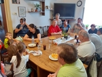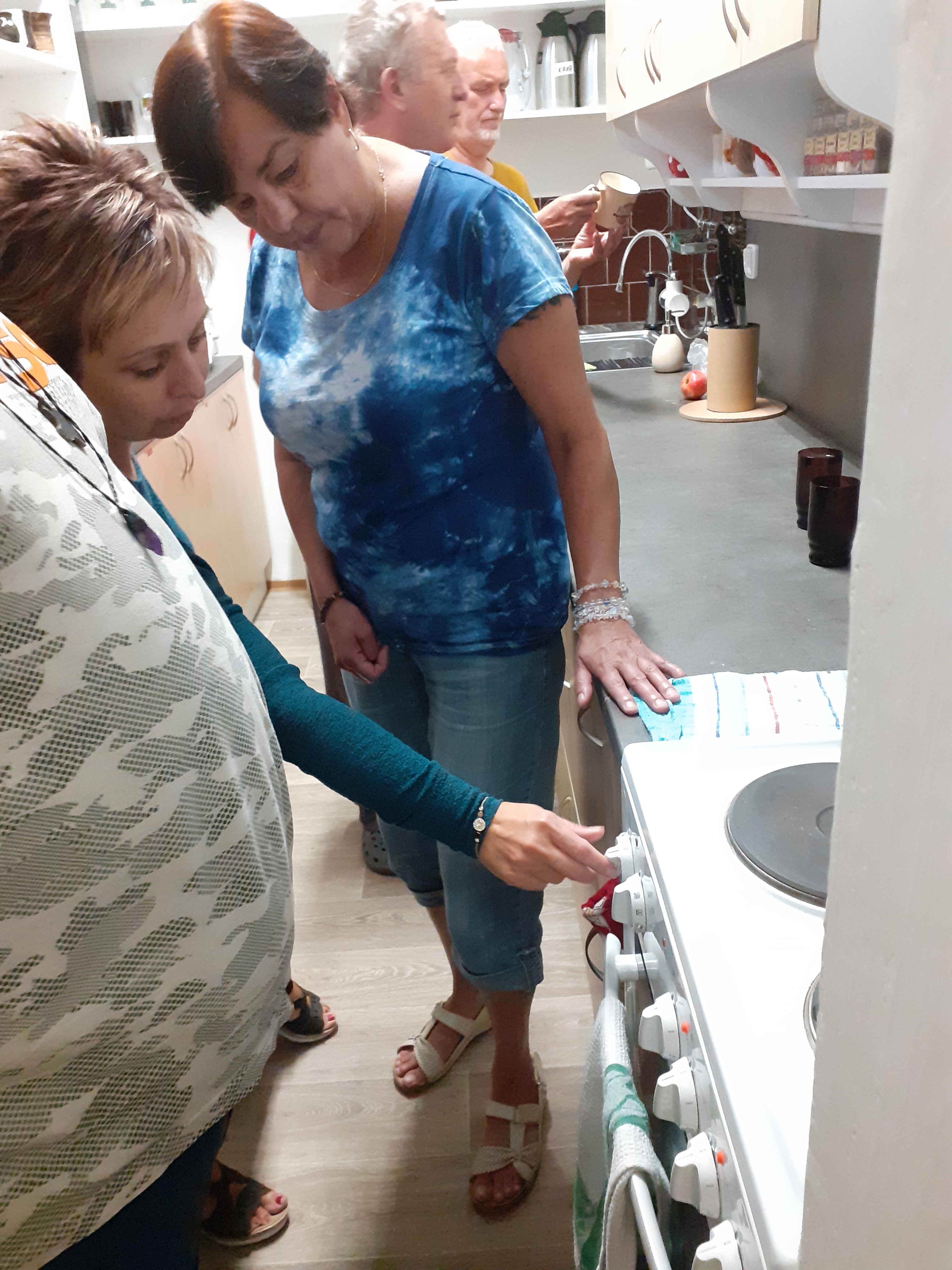 Je dusné, teplé mlhavé ráno s hustým mrholením a my se vydáváme autobusem na přátelskou návštěvu našich kolegů do Šumperku. Na druhé straně kopce mají o poznání přívětivější počasí. Vítá nás slunce, pracovníci a členové šumperské odbočky a také připravené bohaté pohoštění. Povídáme si o novinkách z Jeseníku i Šumperku. Pečlivě a se zájmem si prohlížíme nově zrekonstruovanou a velmi dobře vybavenou cvičnou kuchyňku přizpůsobenou zrakově postiženým. Následuje instruktáž a vysvětlení pravidel showdownu a zvukové střelby a praktické vyzkoušení. Máme příležitost zahrát si s profesionálními hráči showdownu. Skvělí učitelé! Čekající na sportovní aktivity využívají čas k výrobě přívěsku na klíče za trpělivé pomoci Soni. Každá minuta naší návštěvy byla plně využita. Děkujeme pracovníkům a členům šumperské odbočky za vřelé přijetí a čas nám věnovaný.