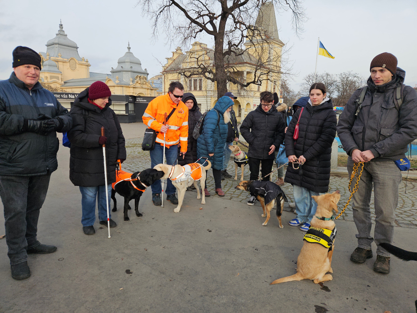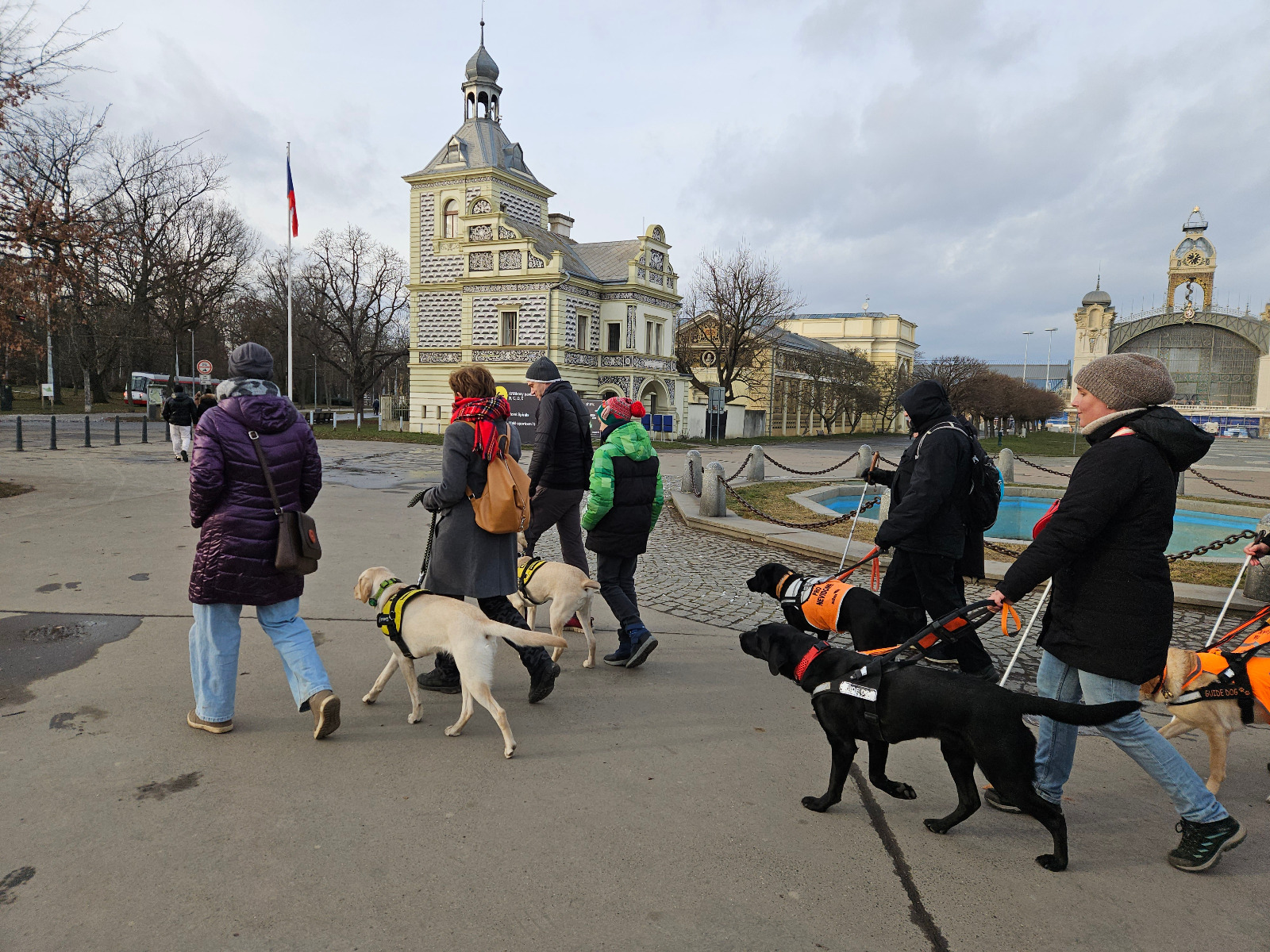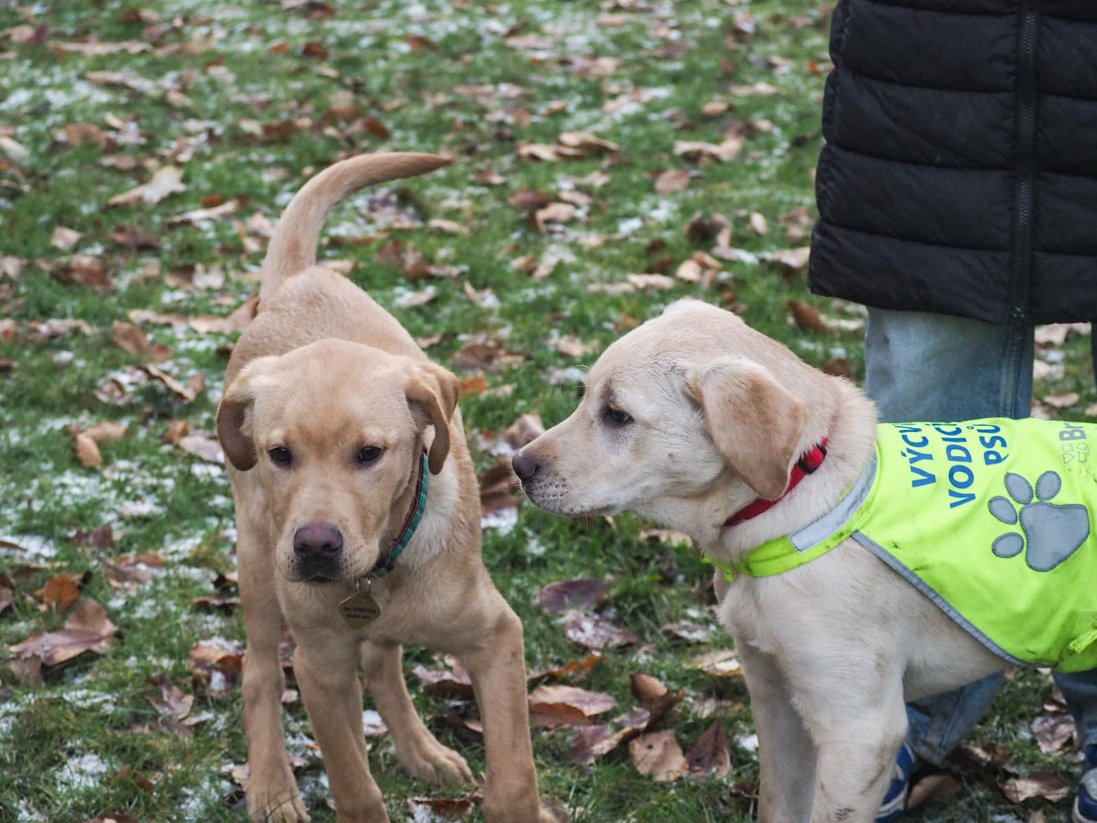 Ale nebyli tu jen psí profíci. Blonďatá omladina z SVVP se svými předvychovateli se přišla těch starších a zkušenějších pozeptat, jaké to je být vodicím psem. Zajímalo to především kontesku Sissi, kterou nástup na psí univerzitu čeká už příští týden. Téměř půlroční Trip si užíval pozornosti hned několika dvounožců, které jeho vychovatelka Jitka přivedla jako pomocníky a případné průvodce nevidomých. Na ty nejmladší - čtyřměsíční „Uzlíky“ Ullu a Una se až z Děčína přijela podívat i maminka Penny.