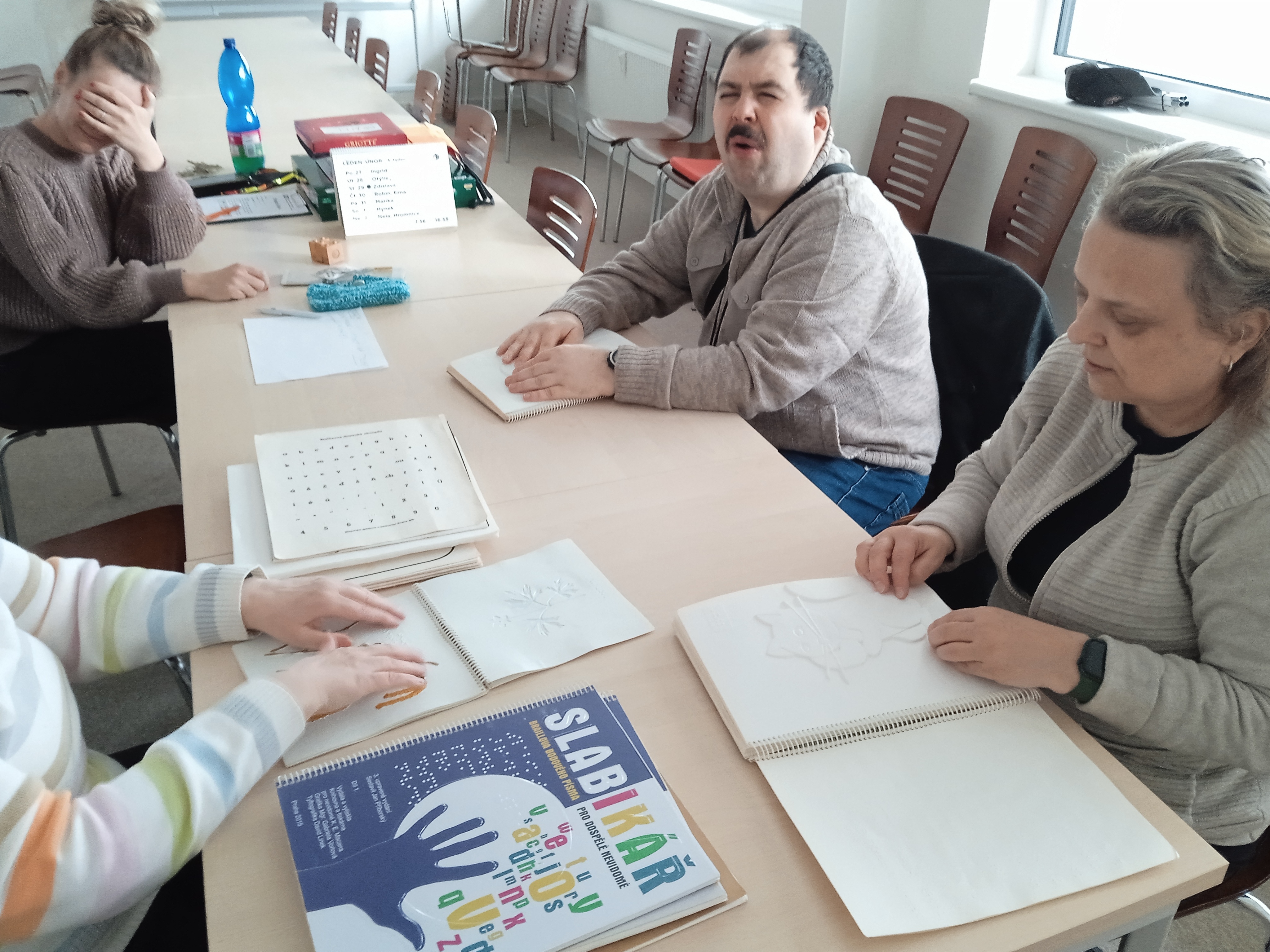 V rámci akce Nácvik bodového písma jsme se ponořili do tajů Braillova písma. Cílem setkání bylo nejen seznámení s tímto unikátním systémem, ale také jeho praktické procvičení. Během setkání jsme se dozvěděli, co je Tyflografika, potrénovali jsme jednotlivé znaky a objevili jsme, co znamená prefix v braillovém zápisu. Bylo to nejen poučné, ale i zábavné – vždyť číst a psát v bodovém písmu je dovednost, která se může hodit každému. A pokud si i vy lámete hlavu nad tím, jak v Braillu správně napsat 100 % nebo 100 ‰, neváhejte a přijďte na některé z dalších setkání. Naše skvělá lektorka vás to ráda naučí! A dozvíte se i další zajímavosti, jako kdo byl pan Šarbach a kdo měl možnost se s tímto pánem osobně setkat.