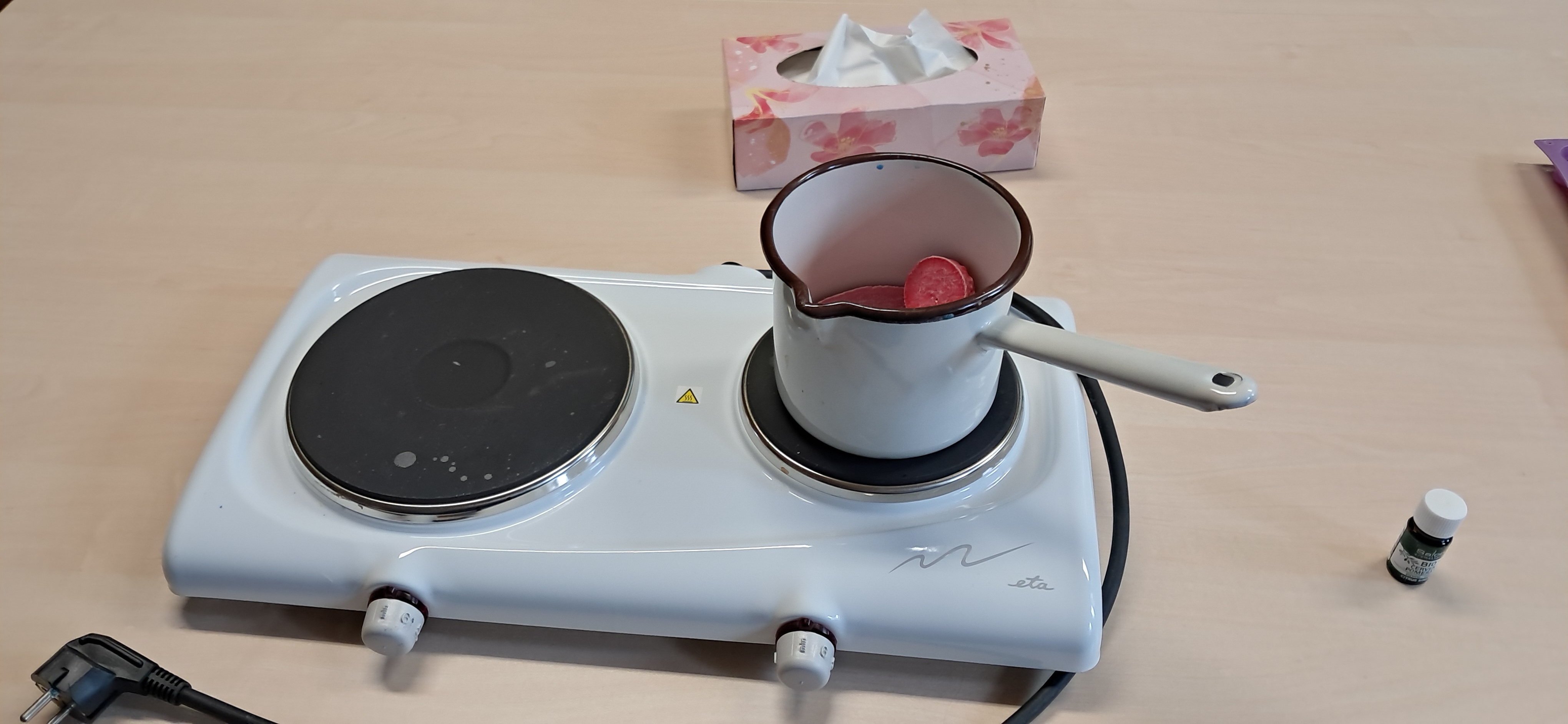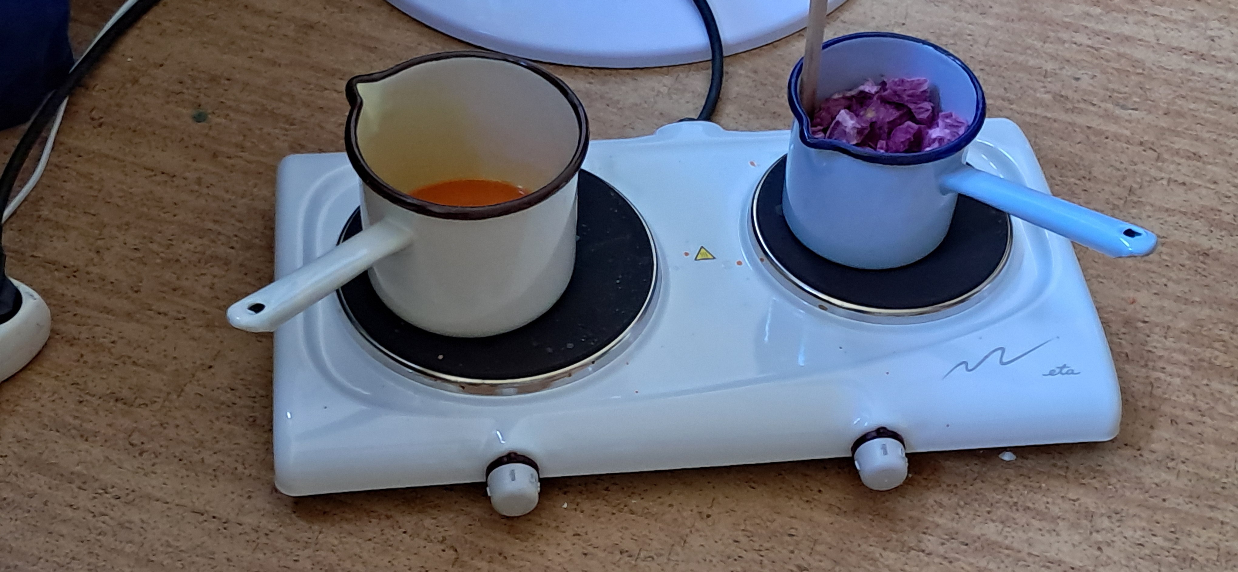 Výsledky náhodného tvoření u nás na odbočce, tentokrát z palmového krystalického vosku jsou vůně do aroma lampy.