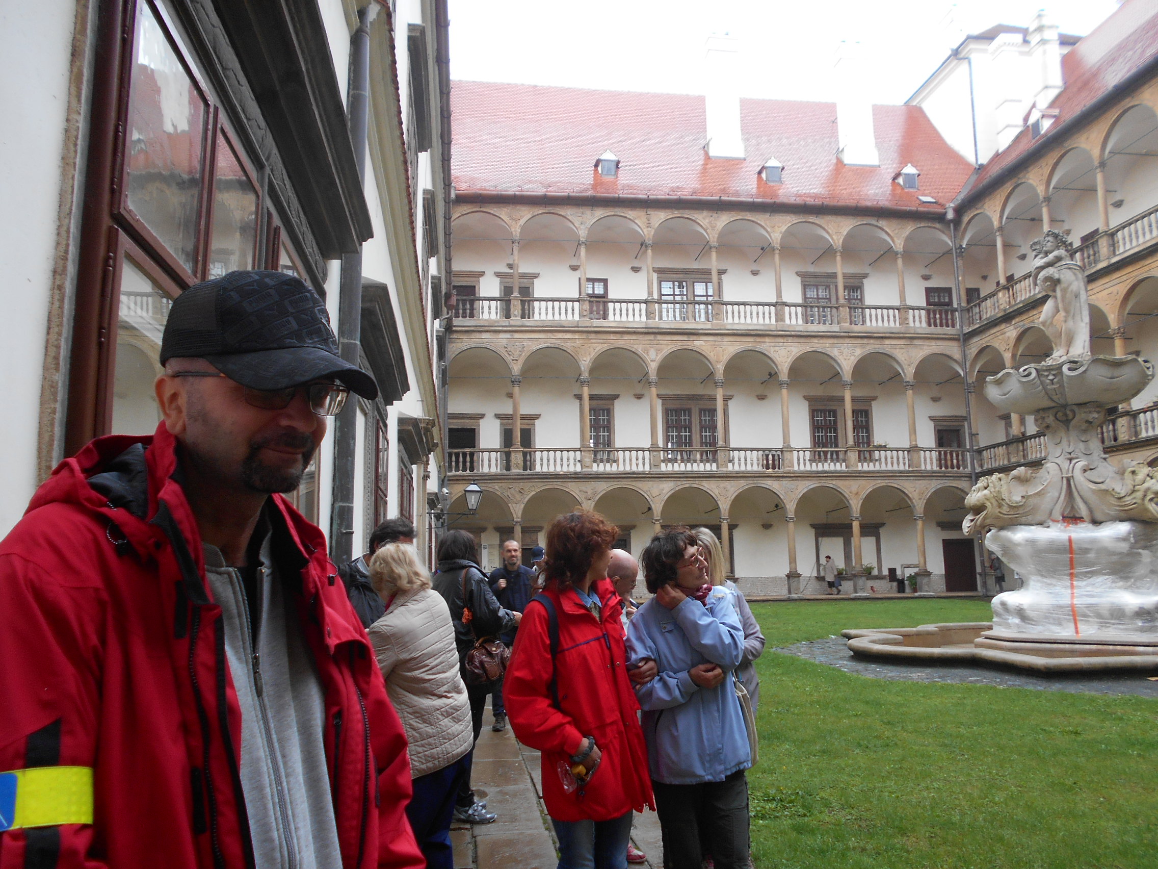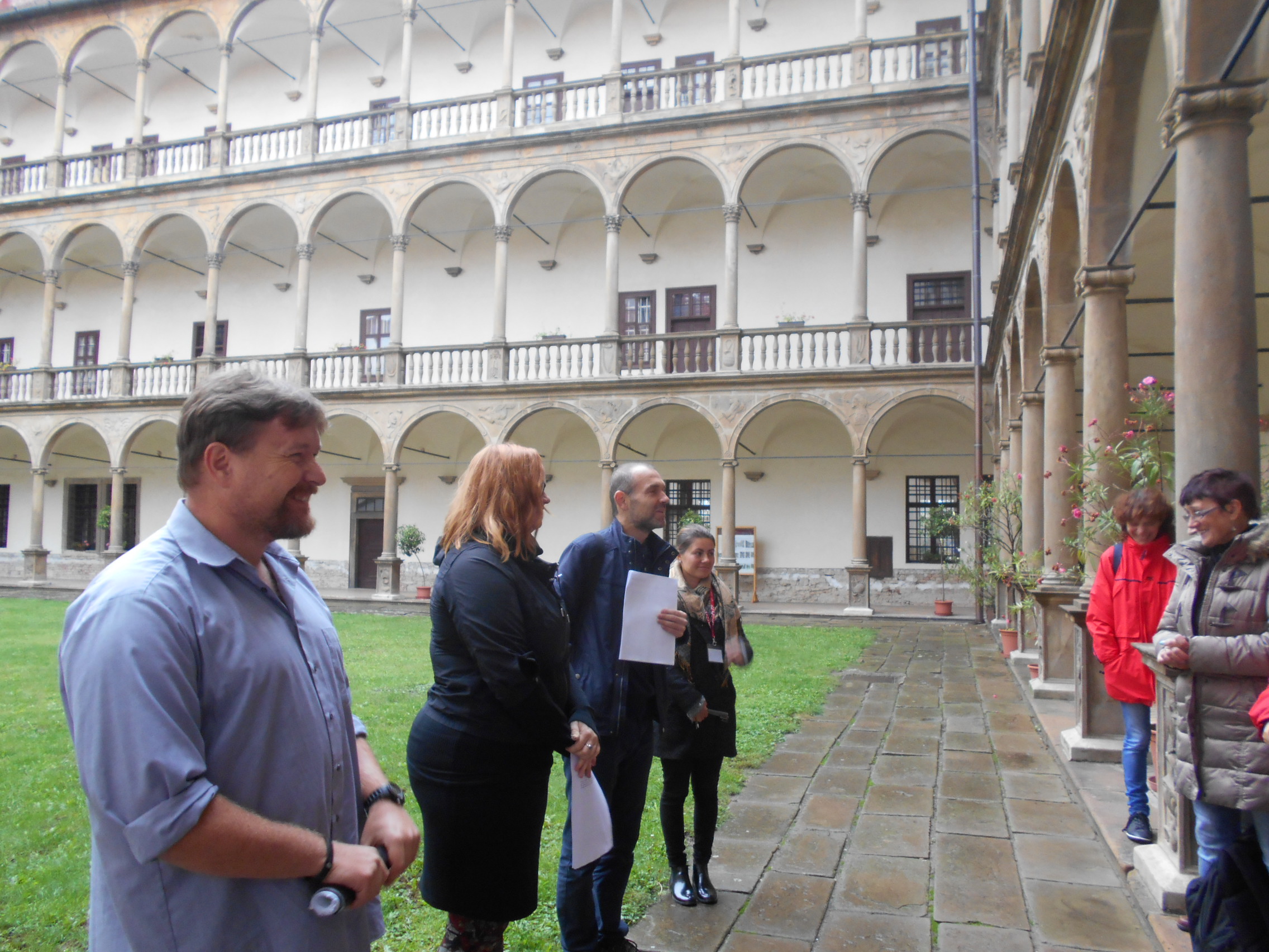 Ve středu 20. září jsme společně s členy odboček Vsetín, Zlín a Uherské Hradiště navštívili renesanční zámek Bučovice, kde pro nás pracovníci NPÚ společně s průvodci zámku připravili úžasnou prohlídku v rámci Roku renesanční šlechty. Na zámku nás přivítal pan Mgr. Petr Hudec se svými kolegy a rozdělené do tří skupin nás provedli zámkem. Během prohlídky reprezentačních sálů s osobitým výkladem jsme měli možnost dotýkat se vystavovaných exponátů, architektonických prvků, replik dobových oděvů, zbraní, nádobí a štukové výzdoby. V nejhonosnějším, tzv. Císařském sále, jsme si vyzkoušeli zahrát na dobové hudební nástroje a zatančit si tanec Branle.