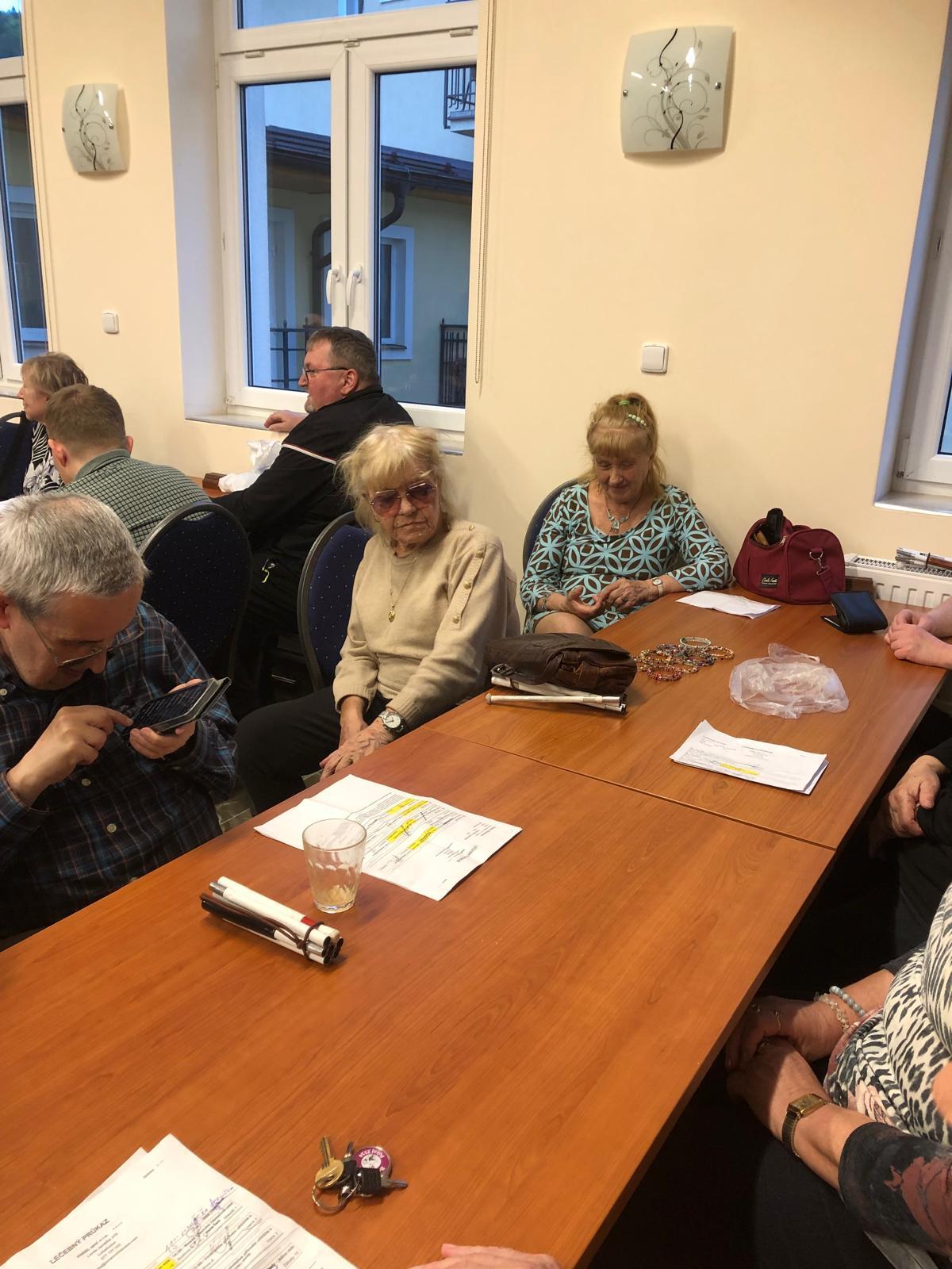 Členové vsetínské odbočky opět zavítali po dvouleté odmlce do známého Lázeňského léčebného domu Praha v Luhačovicích. Ač snad účastníci poprvé, co počasí bylo vskutku aprílové, využili oděv od kraťasů, až po zimní kabáty a čepice, dobrou náladu si určitě vzít nenechali. Díky zajímavému a pestrému programu si odnesli nové informace, zajímavé podněty k přemýšlení o pořízení nových kompenzačních pomůcek, které by jim usnadnily těžký zrakový handicap. Vzhledem k návštěvě paní Dvorské z prodejny Tyflopomůcek, si mohli nejen osahat a vyzkoušet, ale i přímo sepsat žádost s našimi přítomnými sociálními pracovnicemi o vybranou pomůcku. To, ale nebylo vše, nabídla se jim možnost využití spousty procedur, včetně masáží, nejen v rámci balíčku lázní, ale i nabídnutá možnost velmi zkušeného maséra Honzy Lukáše, který ač se přišel zotavit, zavzpomínal si na rekondice, kdy masíroval od rána do večera. Při šestidenním pobytu nechyběly ani společenské večery – prvním nás rozptýlil Radek Žalud svým pestrým repertoárem k tanci a poslechu. Další večer nabídl hotel. Čas v lázních jsme trávili nejen procedurami, společensky, sportovně plaváním, bowlingem, ale i pasivně adrenalinovými zážitky při hokejových utkáních. Ty, které hokej zrovna nezajímal, si užívali večery při stejném adrenalinu u hry Qardo. Hráli úplní nováčci, ale i přeborníci jako je Radek Hájek.
