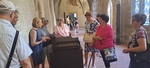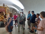 Počítá se v blízké budoucnosti také s obnovením a rozšířením haptické expozice. Muzeum bylo opět otevřeno 24. dubna tohoto roku. Návštěva skupiny členů OO SONS Olomouc se uskutečnila 20. července. Naší průvodkyní byla kurátorka expozic muzea Mgr. Gabriela Elbelová. Pro rozsáhlost expozic vedla naše trasa jen částí muzea. Nejprve do kočárovny, kde jsme si mohli prohlédnout a jen lehce dotknout zlatého kočáru biskupa Ferdinanda Troyera. Odtud pak po bezbariérových chodnících do suterénních prostor až k základům stavby, někdejšího purkrabství a kapitulního děkanství, dokonce i k torzu základů Olomouckého hradu. Prošli jsme křížovou chodbou a vstoupili do paláce biskupa Jindřicha Zdíka, který ve 12. století dokončil dříve započatou stavbu baziliky sv. Václava. Zde jsme si mohli hmatem prohlédnout bronzový model původní románské stavby, která pak doznala mnoha změn