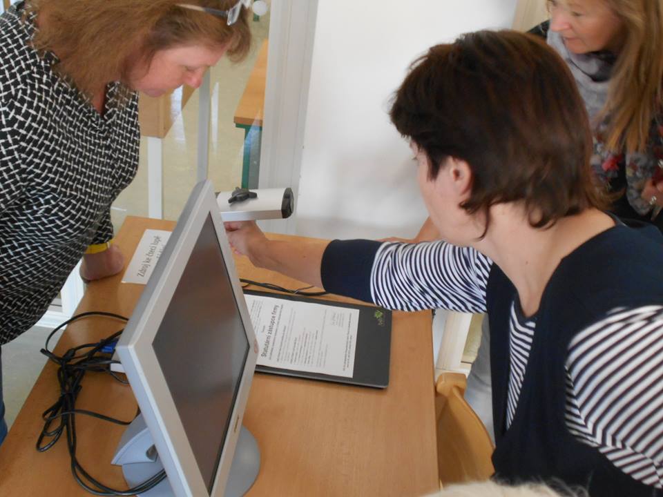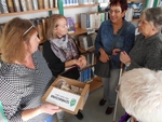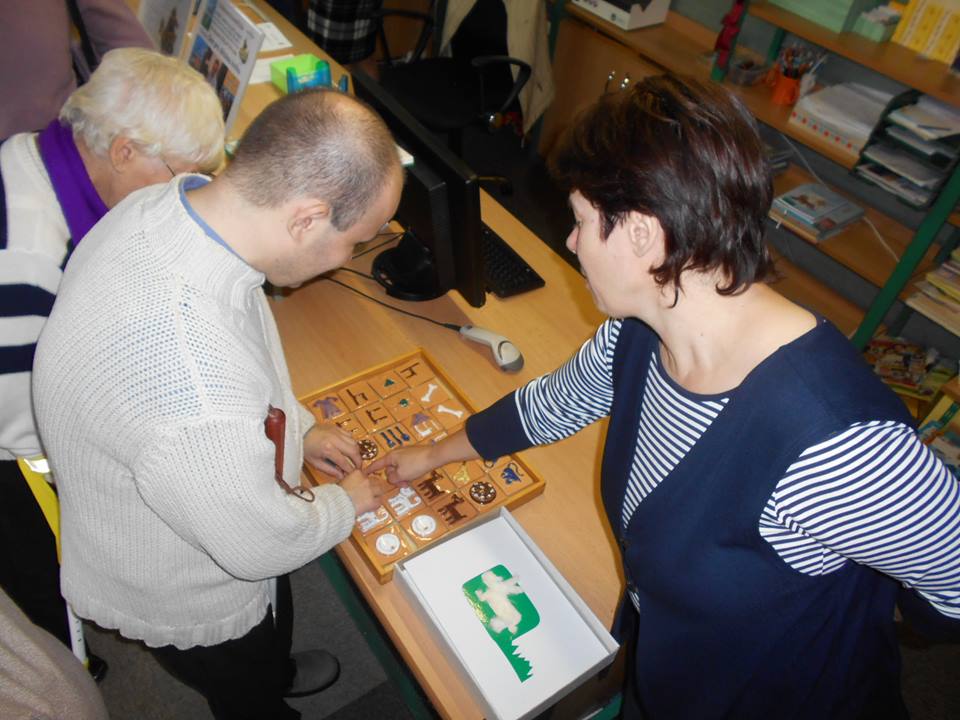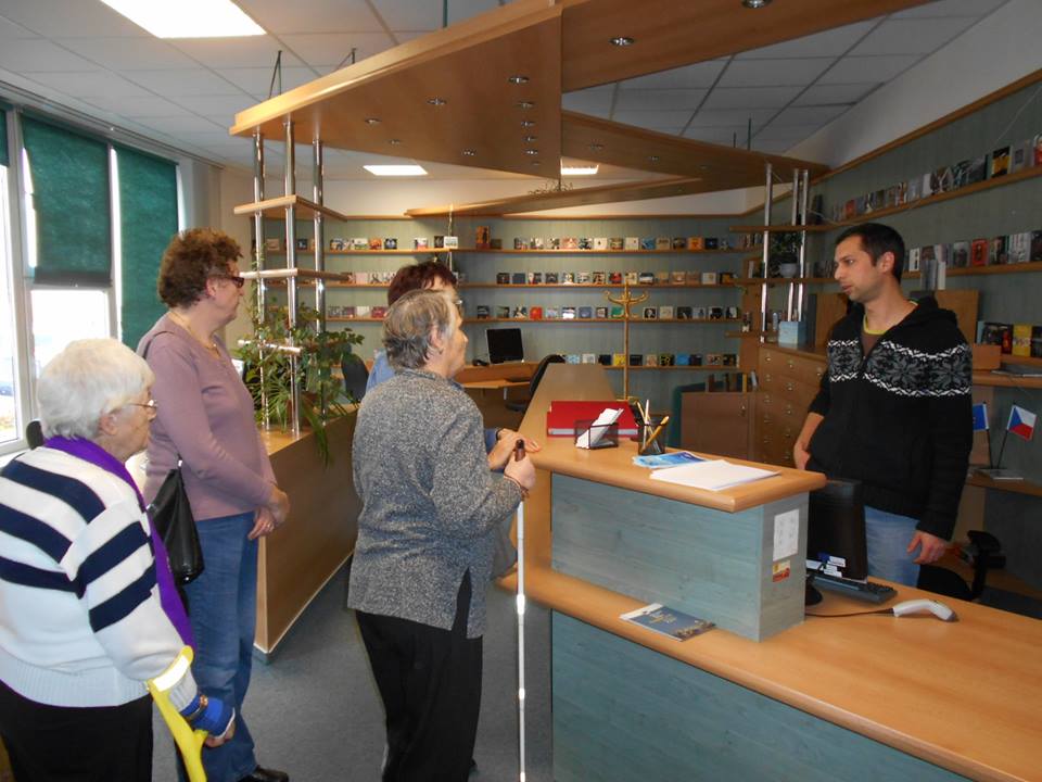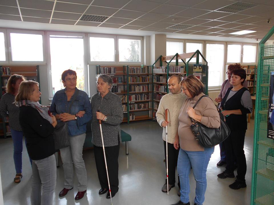 V knihovně nás přivítaly paní Kamila Brablíková a Soňa Bosáková, které nám nejprve vyprávěly o poskytovaných službách a akcích pořádaných pro návštěvníky. Poté nás provedly jednotlivými odděleními knihovny. Navštívili jsme mimo jiné hudební odděleni, oddělení pro dospělé s čítárnou periodik a dětské oddělení, kde připravují nejrůznější programy pro děti. Získali jsme také zajímavé informace o biblioterapii a vlastnoručně si vyzkoušeli keramické pexeso pro zrakově postižené a haptické obrázky zvířátek z různých materiálů. Pracovníkům knihovny děkujeme za vstřícnost a příjemný zážitek.