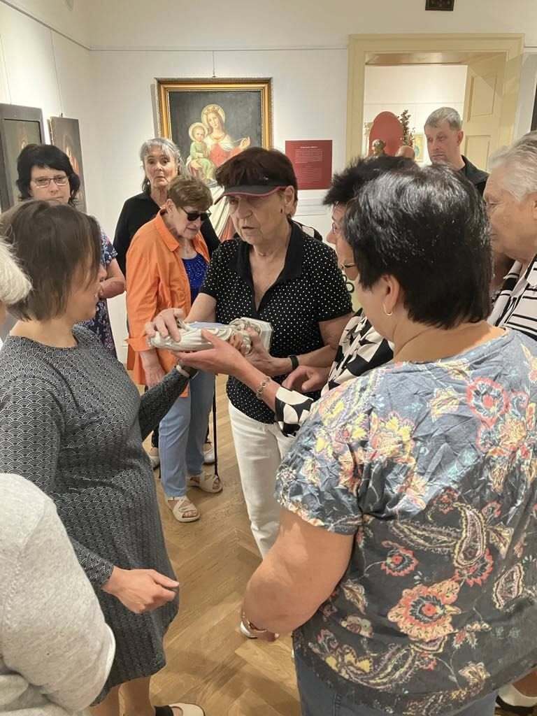 Po ukončení této první části se celá skupina přesunula do zámeckých expozic, kde se jim věnovala průvodkyně Kamila Valoušková. S velkým zaujetím představila vystavené exponáty, přičemž některé z nich bylo možné vnímat také hmatem, což účastníci velmi ocenili.