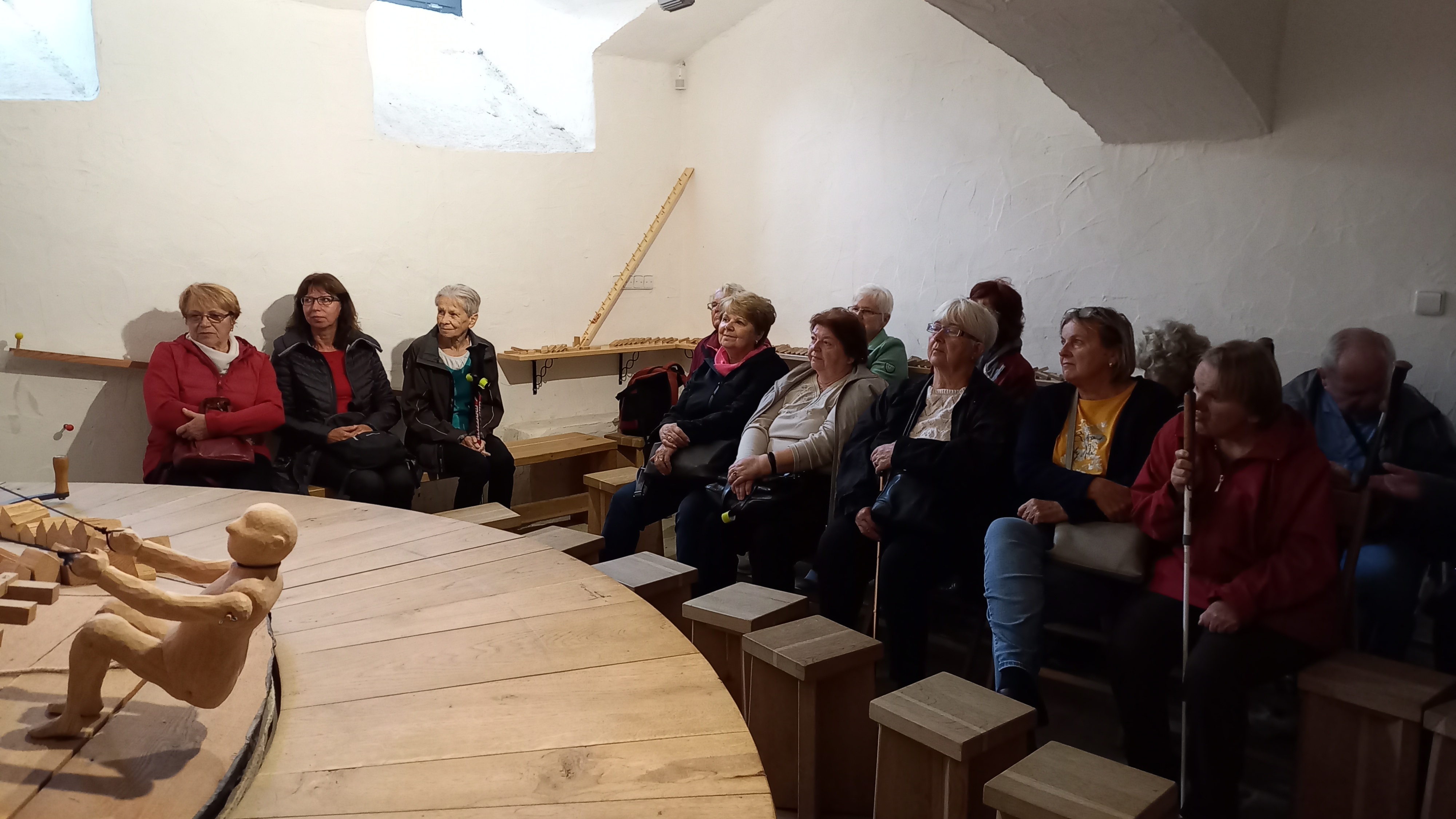 Konečně jsme mohli oplatit vstřícnost našich kamarádů z Náchoda, kterou nám prokázali v létě při naší návštěvě Malých lázní Běloves a Náchoda. Společně jsme se všichni vydali do Muzea Podkrkonoší, kde pro nás byla připravena speciální prohlídka. Mohli jsme si v klidu prohlédnout vybrané exponáty z muzejní sbírky, vzít do ruky, osahat si je. Poté následovala komentovaná prohlídka samotného muzea. Z muzea jsme pokračovali do Galerie draka. Zde jsme si vyslechli pověst o trutnovském drakovi a několik perliček z historie Trutnovska. Vše bylo podáno zábavnou formou, celá expozice byla haptická, klienti si mohli osahat spoustu dřevěných předmětů, které představovaly zmíněnou pověst.