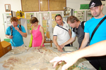 Poslední den našeho pobytu proběhl výlet do Hodonína. V Muzeu naftového dobývání a geologie, jsme se rázem přenesli do dob paleolitu a jury. Toto muzeum je jediné v ČR. Ve venkovní expozici se nácházeli jak strojní technika tak i horniny ukrývající v sobě různé tvary zkamenělých mušlí. V interiéru nás velmi fundovaný průvodce vtáhnul do světa naftaření - seznámil nás jak ropa vlastně vzniká, těží, k čemu všemu ji lze využít. Podal nám poutavě mnoho zajímavých informací a my tak poznali nejen “10 odstínů ropy“. U hmatného modelu mapy ČR jsme zjistili lokaci ložisek zemního plynu a ropy. Součástí muzea je také obsáhlá sbírka minerálů, hornin, fosílií, amonitů, trilobitů. Tady si naše „ručky šmátralky“ opravdu přišli na své. Haptovali jsem nejen již zmíněné zkamenělé horniny všeho druhu ale i raritu v podobě zkamenělého déště či velké krystaly. Dále jsme si sáhli na nářadí používané při vrtech, např. obří dláta či na modely vrtných souprav a věží. Některé z nich byli i interaktivní. Naši muži se jen tetelili blahem z těchto technických objevů. Očichali jsme surovou ropu, natural 95, petrolej, letecký benzín ajj. Jako suvenýr jsme si odvezli místní tekuté černé zlato, které je výborné nejen jako palivo ale je i výtečný pomocník při léčbě exému. Následoval gastnomický zážitek - oběd v podobe vepřové panenky se sušenými rajčaty a chřestem. Po vydatné specialitě se nám zachtělo trochu si zalenošit a tak zakončení pobytu proběhlo v rytmu relaxace a regenerace všeho druhu v denních lázních Hodonín. Vydováděli jsme se v bazénu, whirpoolu a saunách, které se velmi zalíbili i těm, kteří nejsou zrovna příznivci saunování. Bylinková sauna vonící po citrusech a eukalyptu byla úchvatná. Kombinace přohřátí a zároveň inhalace vonných esencí nás dokonale uvolnila. Příjemným osvěžením po jejich pobytu pak byla ledová studna s tříští ledu či mlžná sprška. Co říci na závěr, snad jen to, že jsme si opět vychutnali pobyt na Moravě plnými doušky a těšíme se, kam nás vítr příště zavane.