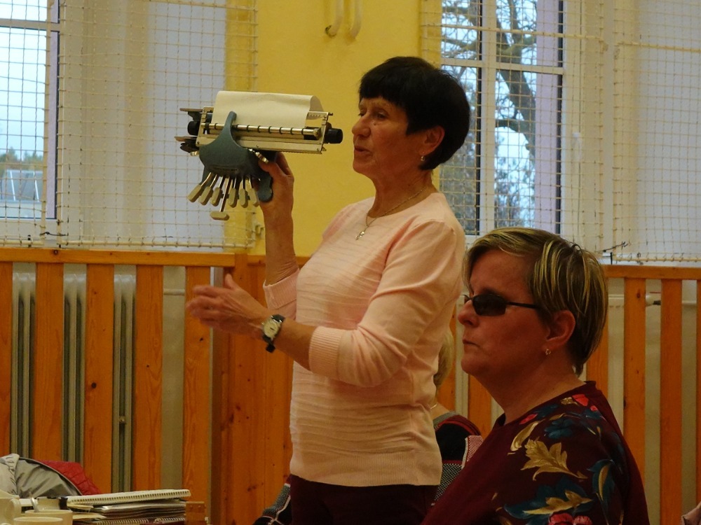 pomůckách denní potřeby, ale i život nevidomého s vodicím psem. Také došlo
