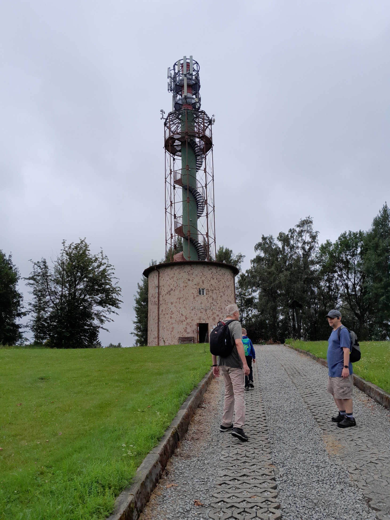 V sobotu 13. července jsme se vydali navštívit další jizerskohorskou rozhlednu Nisanku. Nová dominanta stojí na nepříliš výrazném Novoveském hřbetu, který odděluje Lučany nad Nisou a Novou Ves, nadmořská výška 676 m. Celkem 35 metrů vysoká věž byla rozšířena o schodiště a vyhlídkový ochoz pro turisty ve výšce 24 metrů nad zemí. Spodní část věže je obložena do výše 9 metrů kamenem. Počet schodů: 126