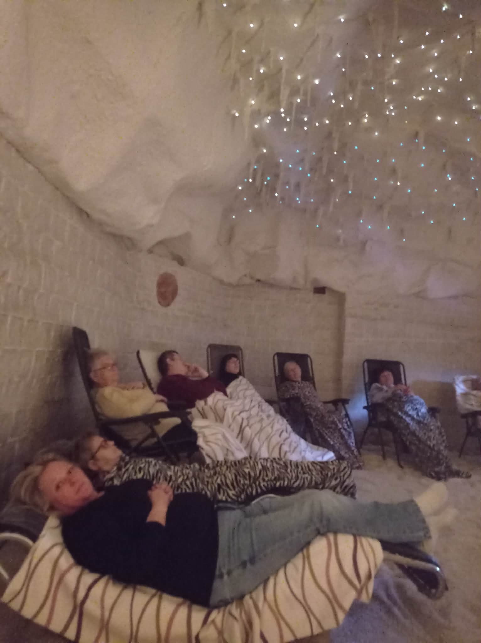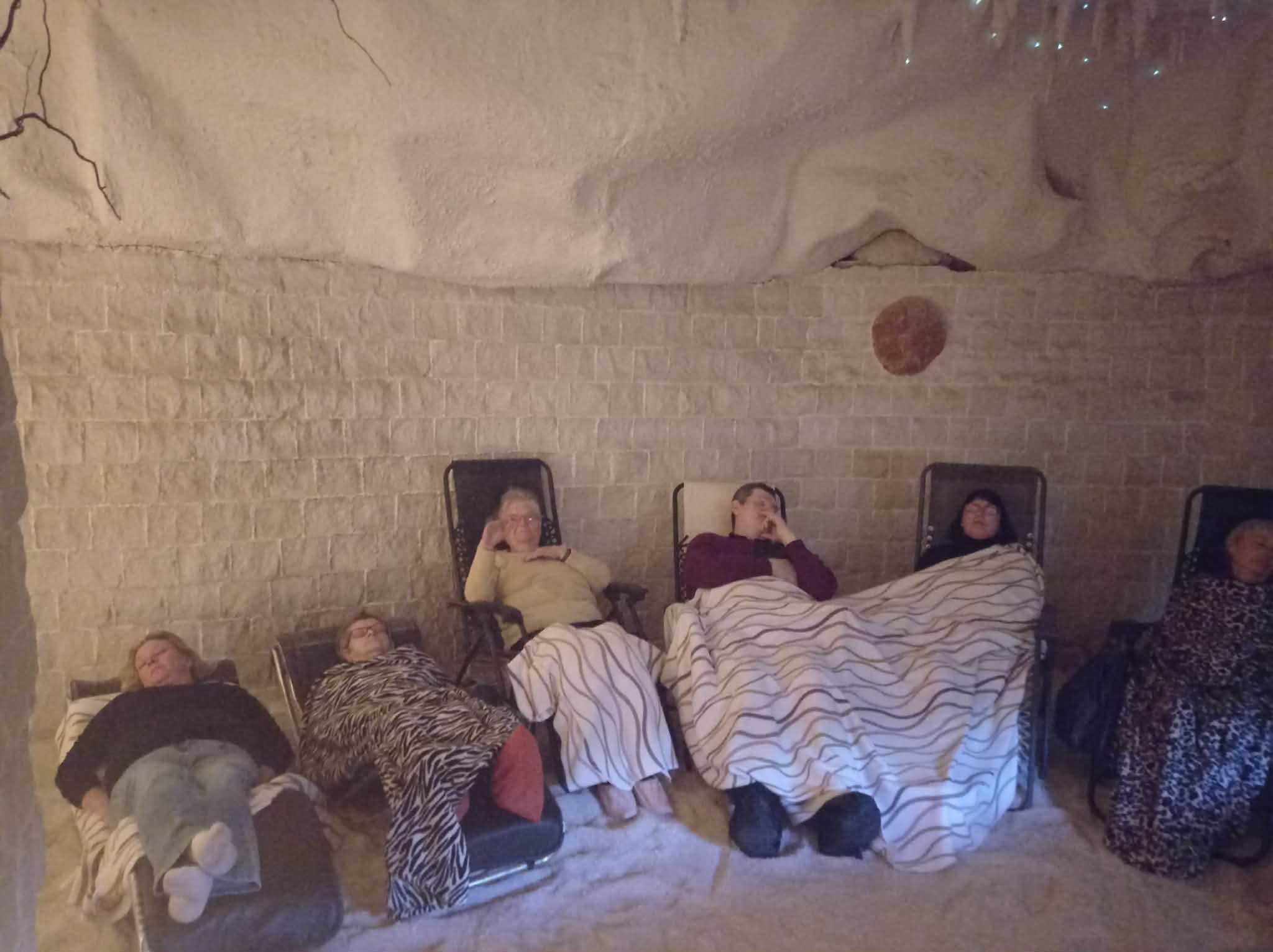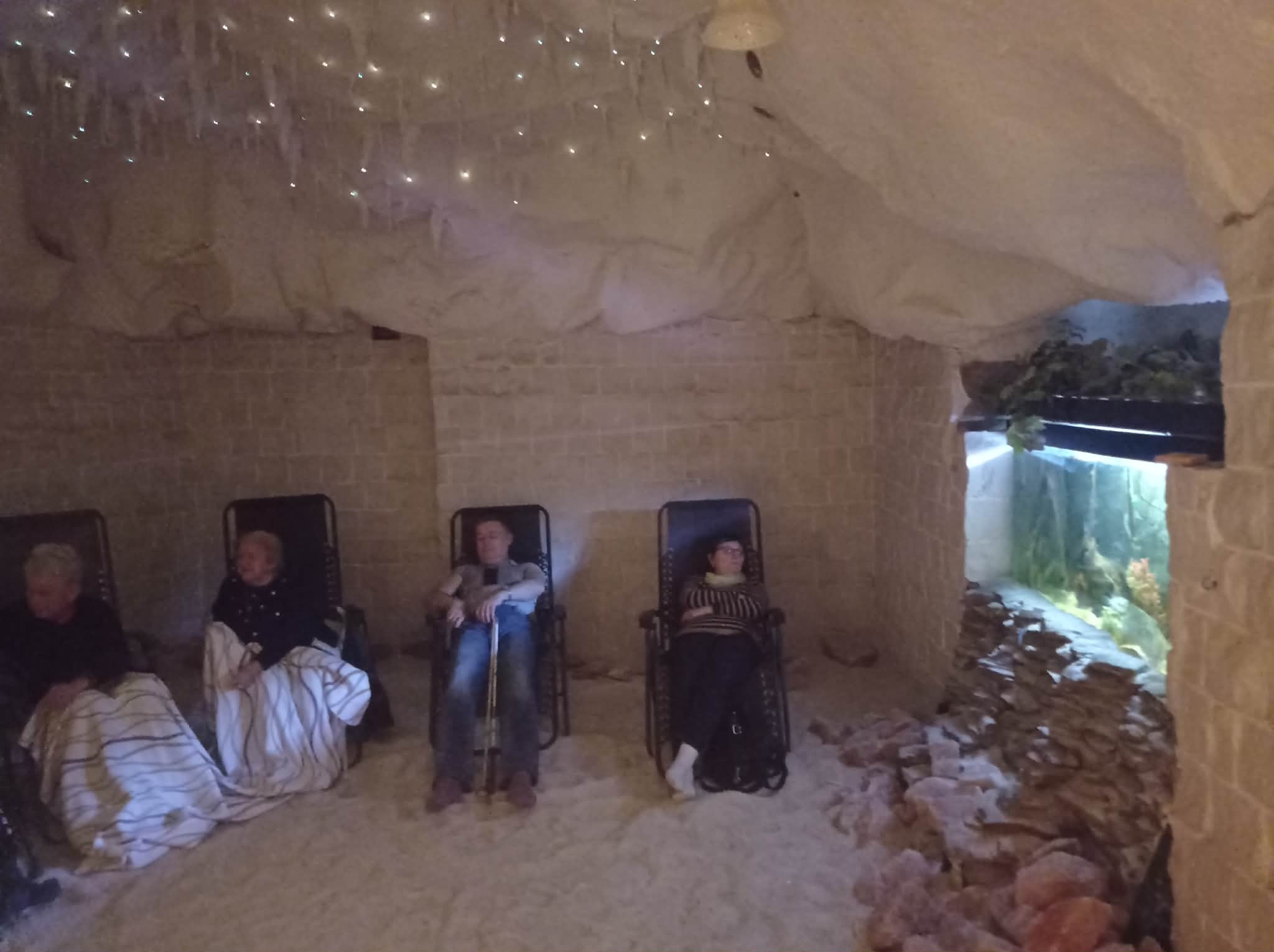 Místo zrušené pondělní schůzce kvůli Velikonocům jsme se následující středu na OO Kolín vydali do solné jeskyně. Zájem byl tak velký, že jsme se museli rozdělit na dvě skupiny. Krásně jsme se zrelaxovali za poslechu zvuků moře. Následně jsme vyrazili na výborný oběd.