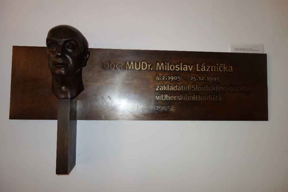 Úvodem jsme se dozvěděli něco z historie a vzniku divadla. Přičemž potřeba samotného divadla se nejvíce projevila za německé okupace. V té době bylo jistě třeba se alespoň na chvilinku zasmát. O zrod Slováckého divadla se po osvobození Československa zasloužili tři přátelé Oldřich Lukeš, Josef Huška a MUDr. Miloslava Láznička, jehož busta s pamětní deskou se nalézá při vchodu do divadla. Snažili se z tehdejších ochotnických divadel udělat profesionální divadlo na Slovácku,a to se jim zcela jistě povedlo. Divadlo oficiálně zahájilo svou činnost 10. 10. 1945 hrou Gabriely Preissové Její pastorkyňa v režii Oldřicha Lukeše, který se současně stal i prvním uměleckým ředitelem Slováckého divadla. Některé z nás také překvapilo, že se divadlo nalézá v prostorech Sokolovny i možnost stěhování divadla do jiných prostor.