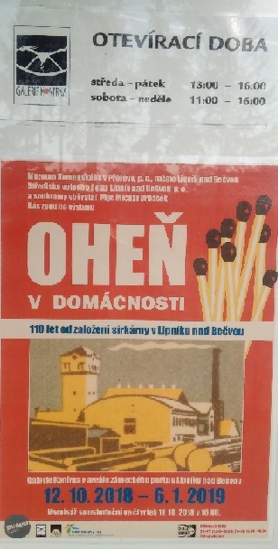 Návštěvníci se budou moci pokochat řadou originálů i kopií dobových fotografií, plánů a archiválií, přečíst si informace o historii podniku, prohlédnout zápalkové etikety od poloviny padesátých do poloviny osmdesátých let a zápalkové krabičky z Lipníku, Sušice i celé řady zemí světa.