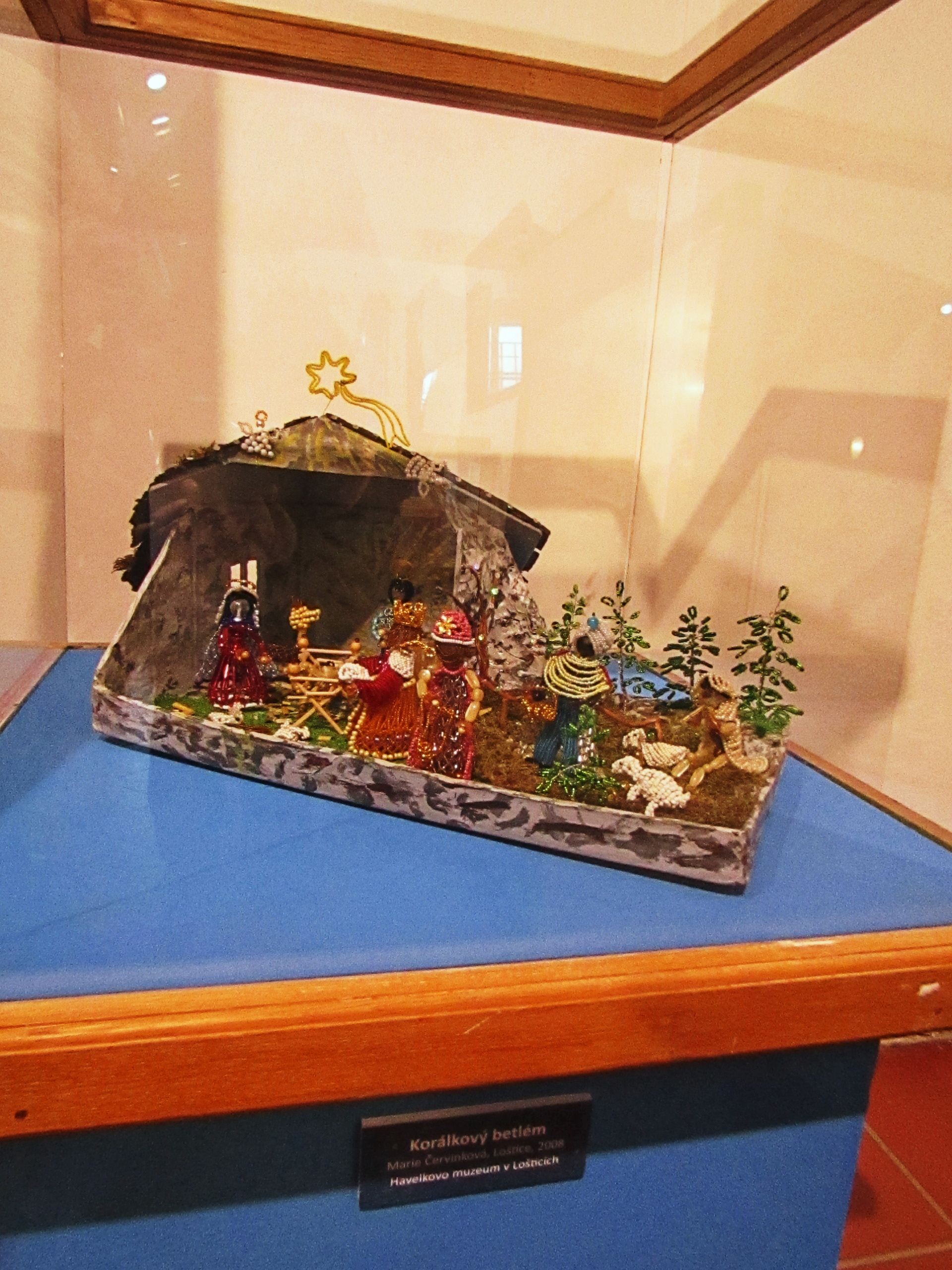 Kromě dřevěných, papírových, plastových a keramických betlémů nabízí muzeum k vidění i betlém korálkový od Marie Červinkové z Loštic.