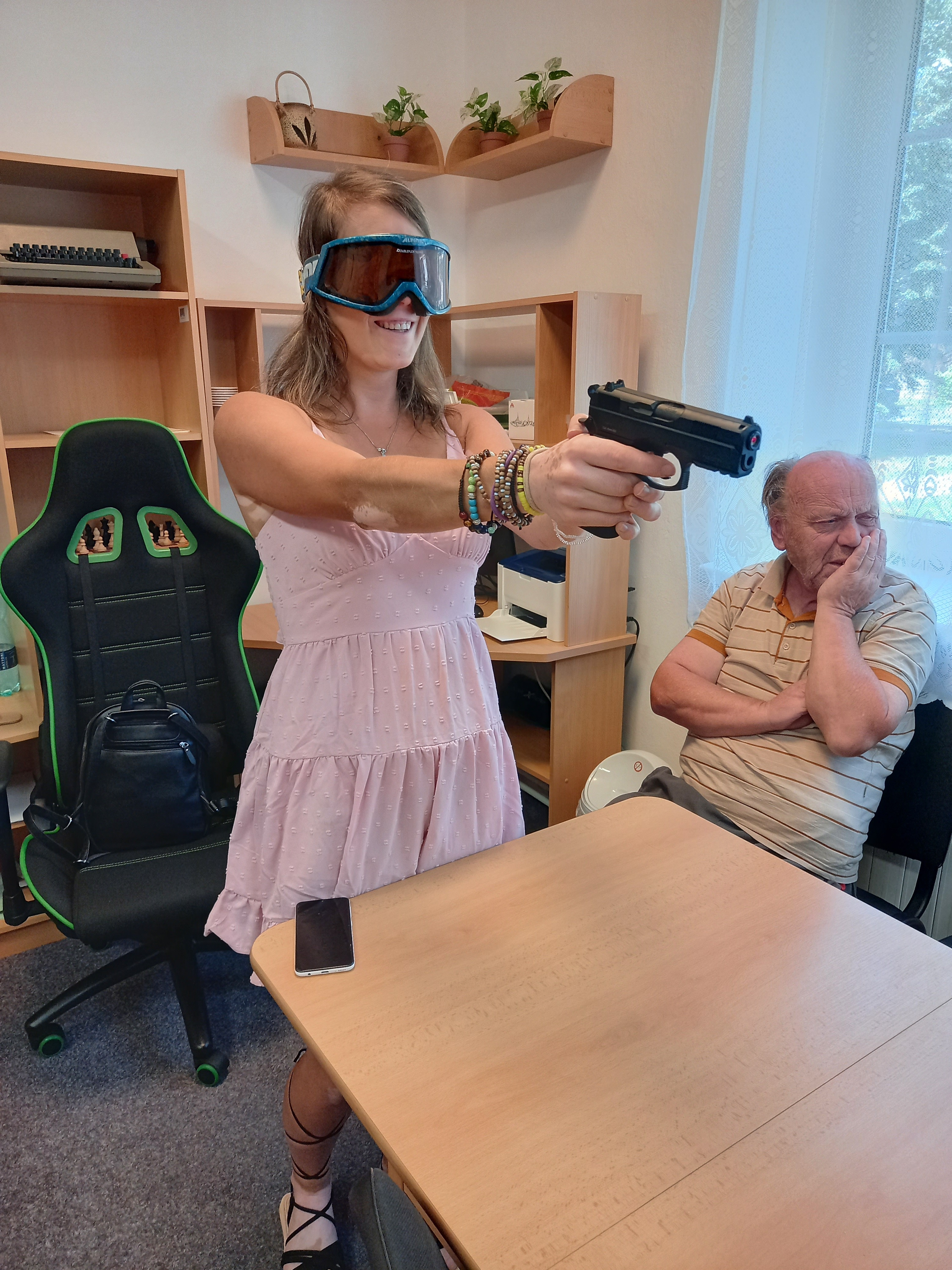 Poté se zájemci přesunuli do dolní klubovny, kde si mohli poměřit své síly v showdownu s našimi hráči, kteří se účastní i mezinárodních turnajů. Jejich hra jesenické hosty uchvátila natolik, že začínají uvažovat o občasném dojíždění do šumperské klubovny, aby si mohli společně zatrénovat. Kromě showdownu si také vyzkoušeli simulovanou zvukovou střelbu. Někomu se dařilo více, jinému méně, ale nikdo neodešel poražen a všichni se při tomto sportu skvěle bavili.