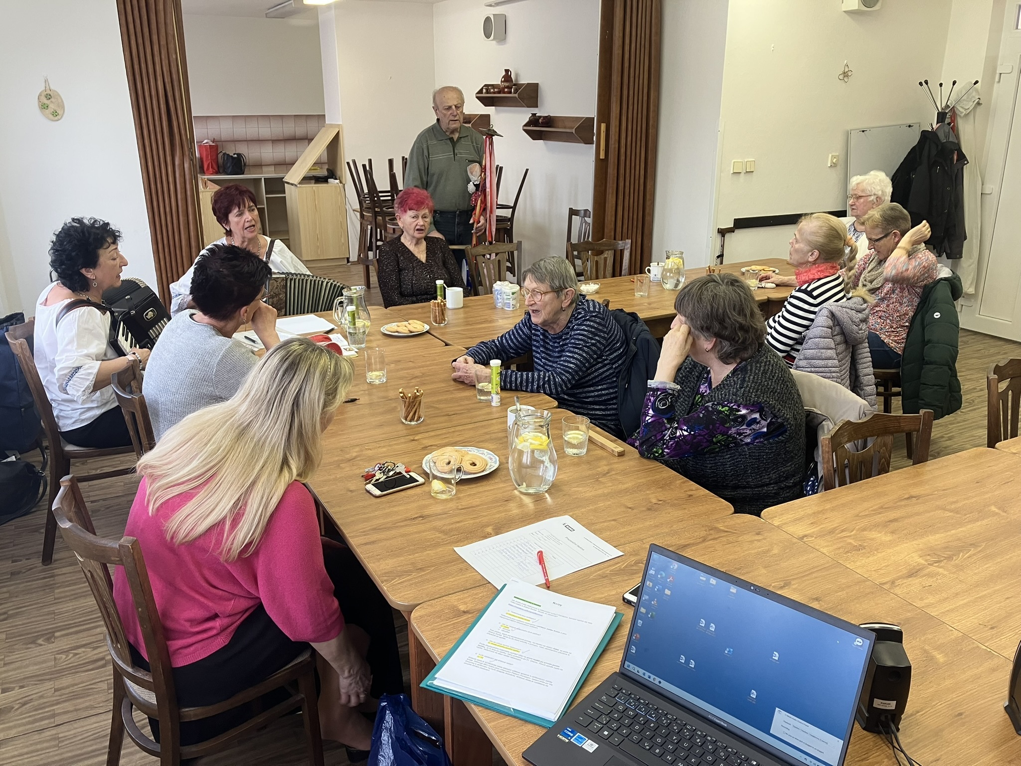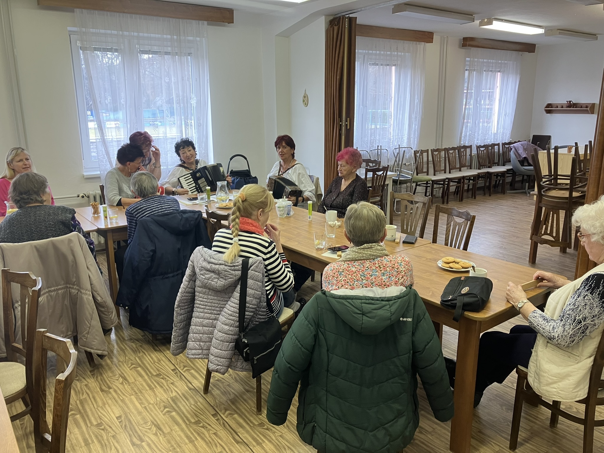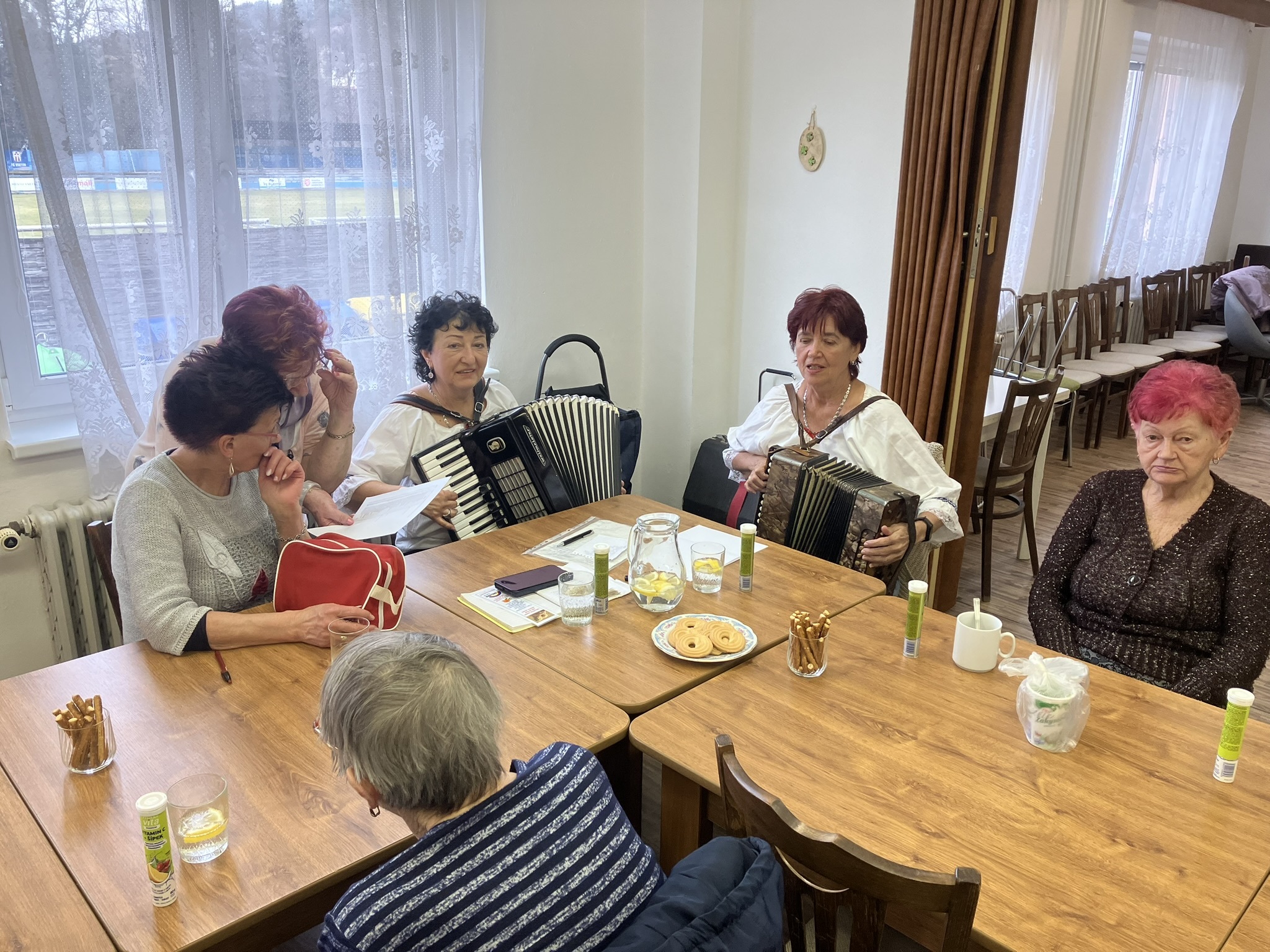 Poté nás všechny potěšily svou hudbou a zpěvem oblíbené harmonikářky Eva a Jiřka. Uživatelé se během aktivity dozvěděli spoustu zajímavostí, procvičili si paměť a také si zazpívali oblíbené lidové písničky.
