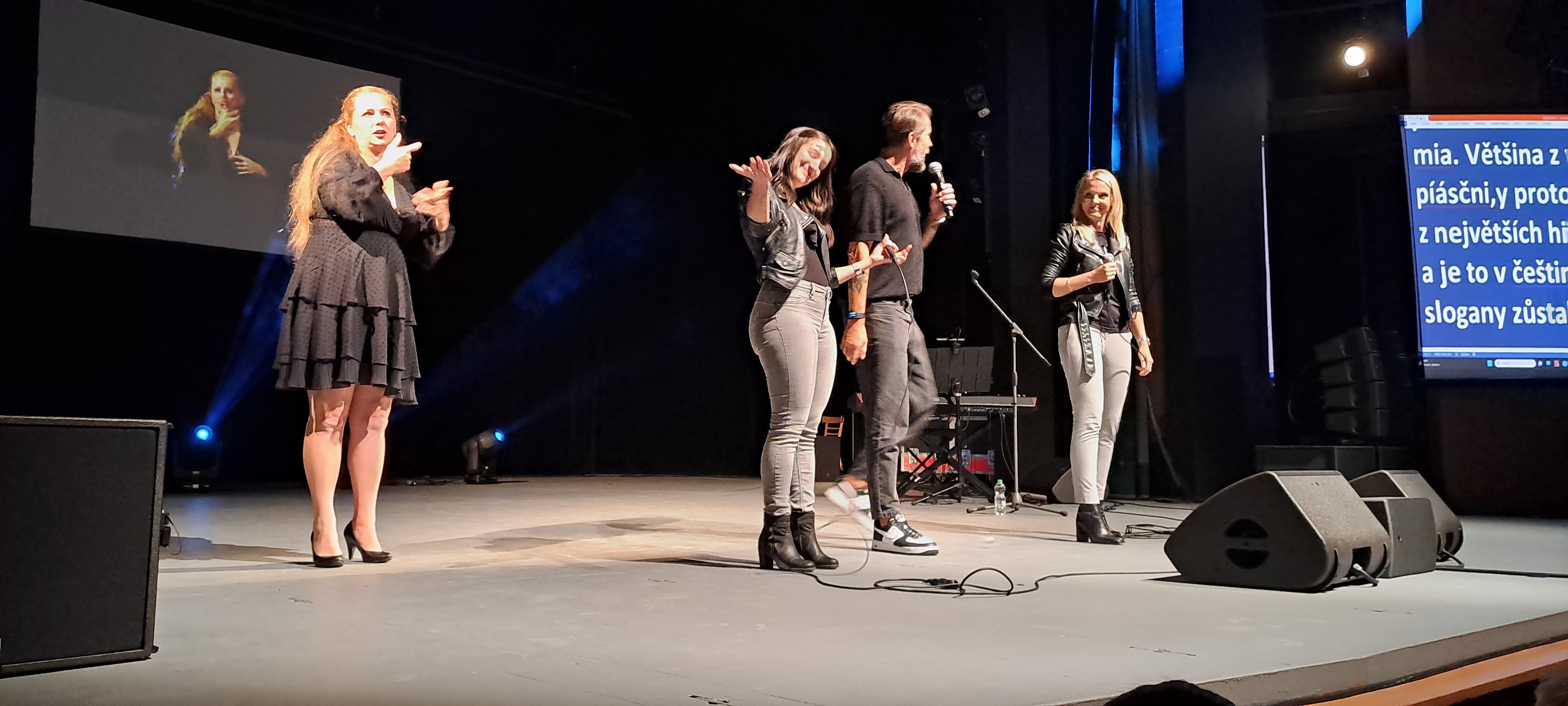 V průběhu večera jsme také měli možnost shlédnout videa, medailonky natočené v rámci kampaně Tři životy, představující tři klienty poradenského centra a jejich každodenní život se sluchovým postižením.