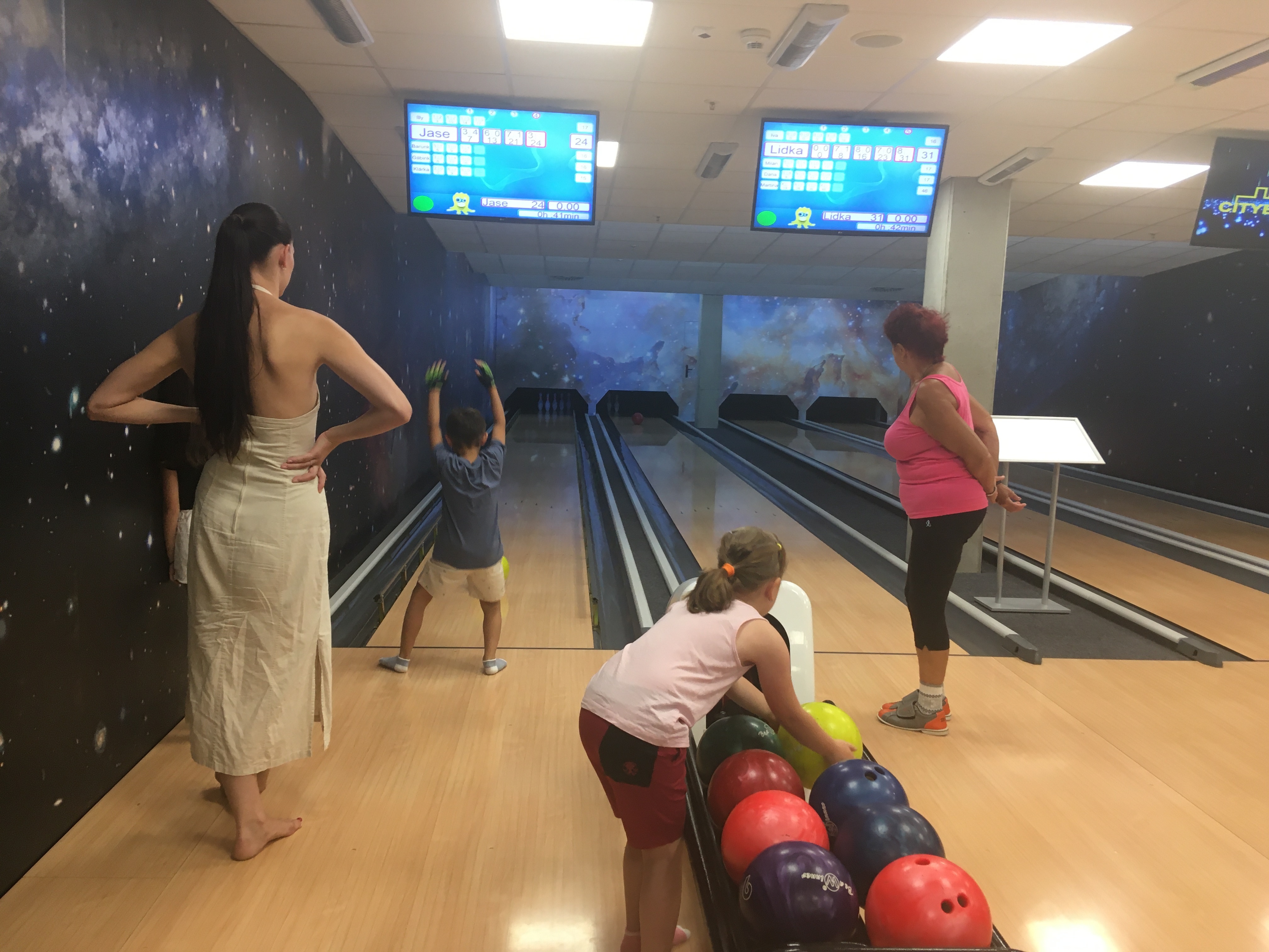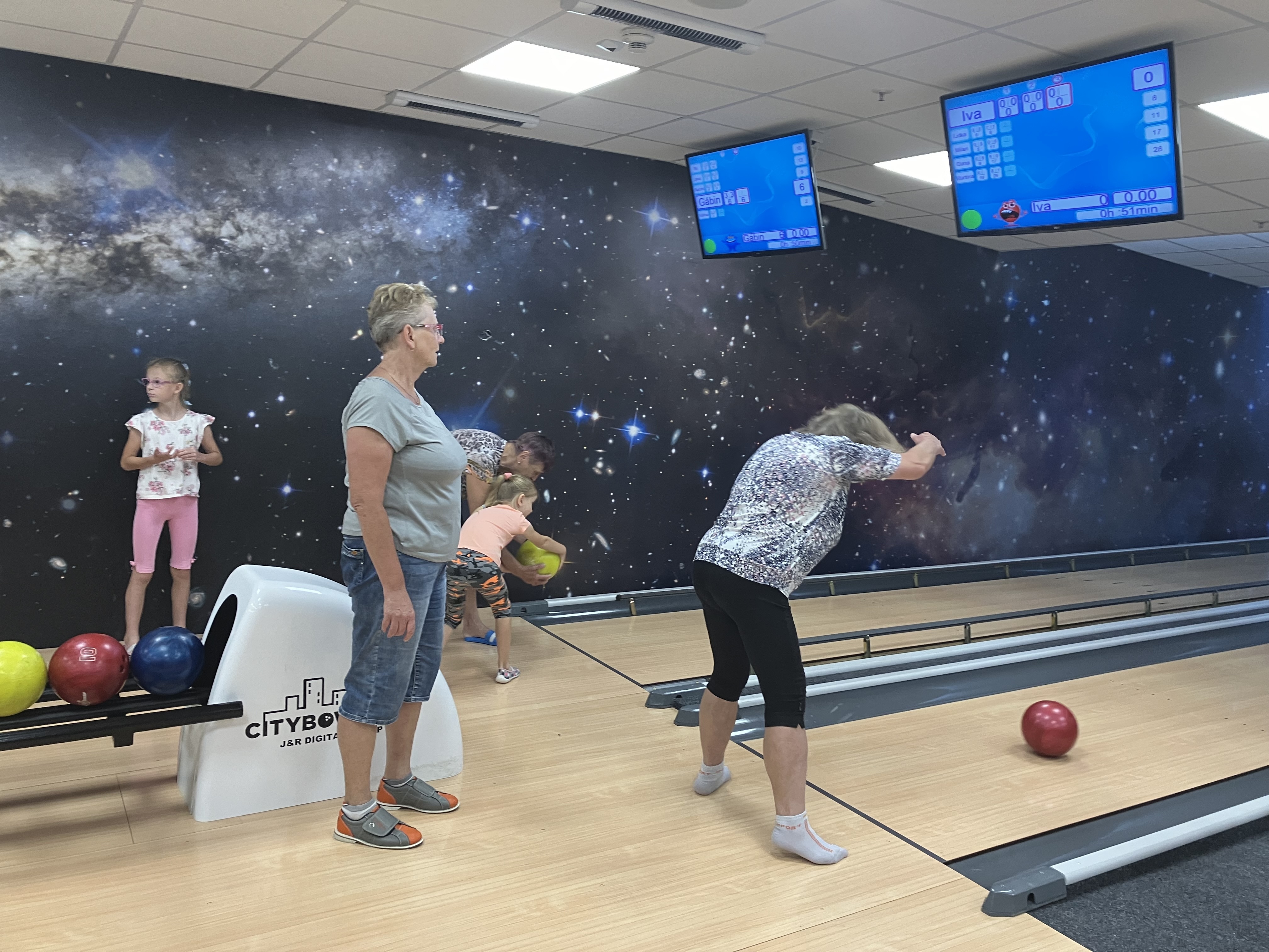 V pondělí 22. července 2024 se uživatelé služby sešli ve Smetanově obchodní galerii Vsetín tentokrát netradičně i se svými vnoučaty, aby si zahráli oblíbenou hru bowling. Nejprve si uživatelé hapticky prohlédli prostory bowlingových drah a poté si zopakovali pravidla hry. Uživatelé obsadili dvě dráhy spolu s vnoučaty a příjemně se tak při hře bavili. Během hry jsme uživatele průběžne seznamovali s plánem aktivit na letní období a seznamovali je s důležitými informacemi. Na závěr jsme hrající seznámili s úspěšnými výsledky hry. Příští bowling ve Vsetíně proběhne 26. srpna, uživatelé se již těší na další podobné setkání.