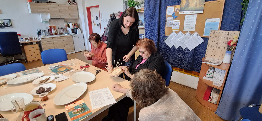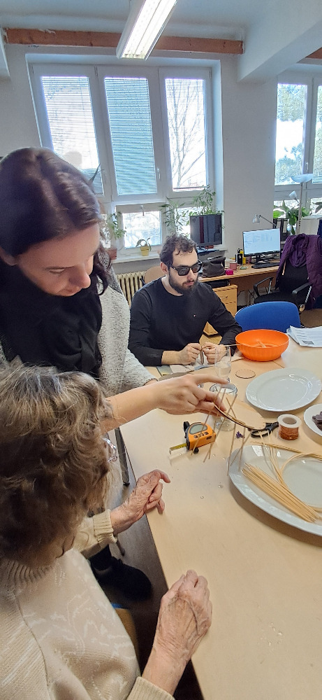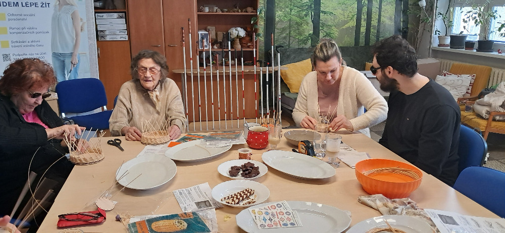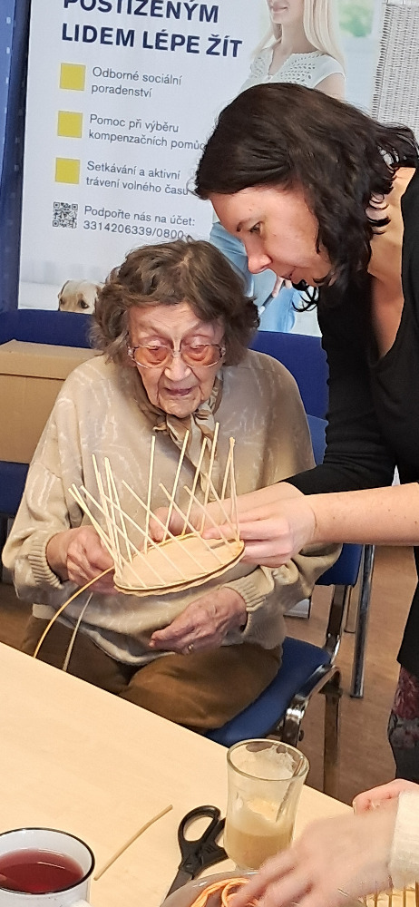 No a teď se tedy obšírně a oklikou dostávám konečně k tomu novému a nejlepšímu tvořeníčku, jaké jsme měli kdy tu možnost na odbočce v Příbrami vyzkoušet. Ony přívlastky dostalo od lidí, kteří si odpolední aktivitu pochvalovali. Na začátku se všichni trochu báli. Shodli se na tom, že vlastně netuší, do čeho jdou. V průběhu výroby se hrozně uvolnili, hýřili vtipem a dobrá nálada byla tak hustá, že by se z ní daly plést košíky.