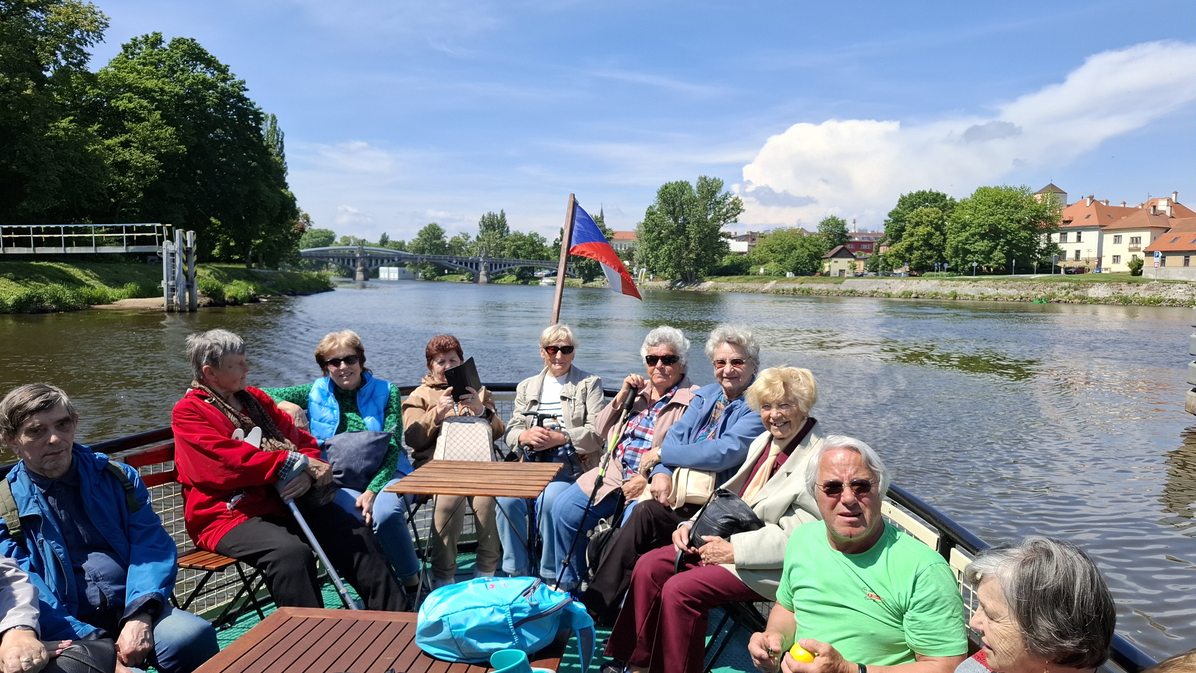 Ve středu 21. 5. 2025 jsme společně vyrazili autobusem do Nymburka. Abych autobus naplnili, přizvali jsem s sebou členy senior klubu Benešov. Výlet to byl skutku z těch, na které se nezapomíná. Krásná procházka po Nymburku, slunečná projížďka po Labi lodí Blanice, výborný oběd v pivovarské restaurace … A pak nad Poděbrady odněkud připluli bouřkové mraky. Že byli bouřkové a plné vody mohla potvrdit většina z nás. I přes průtrž mračen jsme stihli v Poděbradech prohlédnout si zámek, Jiřího na koni i pověstné hodiny na kolonádě.