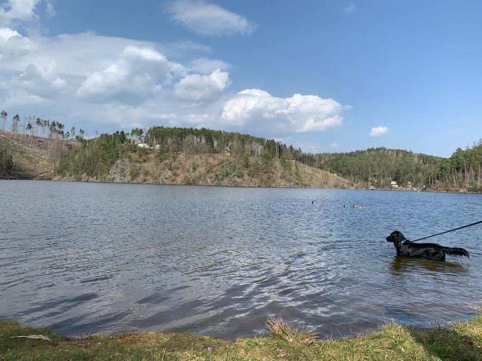 Z hp Potůčky na 121. km to nemá daleko domů, do Karlových Varů, náš zatím nejaktivnější turista, černý labrador Lacko.