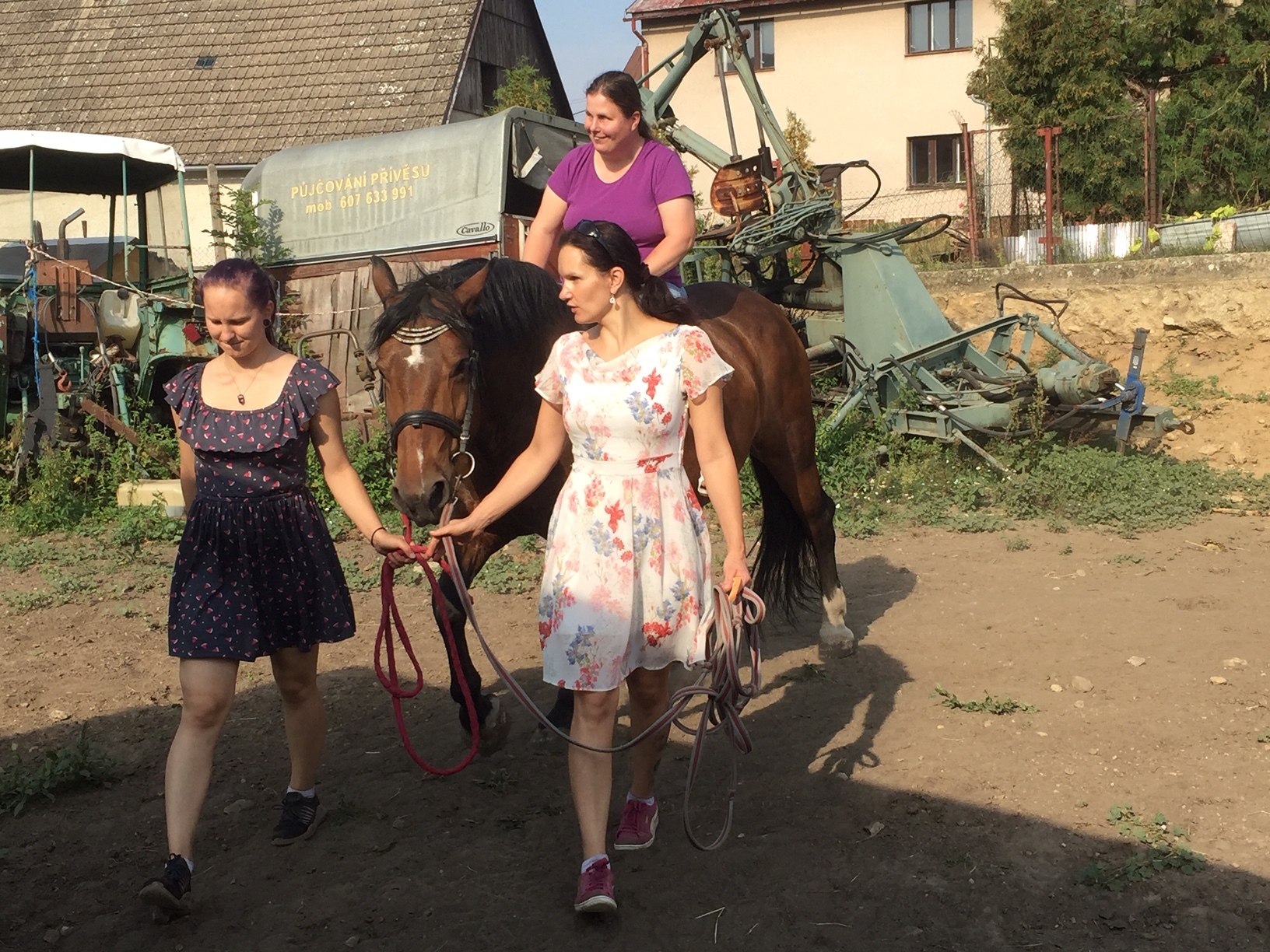Adélka nás čekala na zastávce u autobusu, odkud nás odvedla ke stáji, kde již byla připravená Perlička.