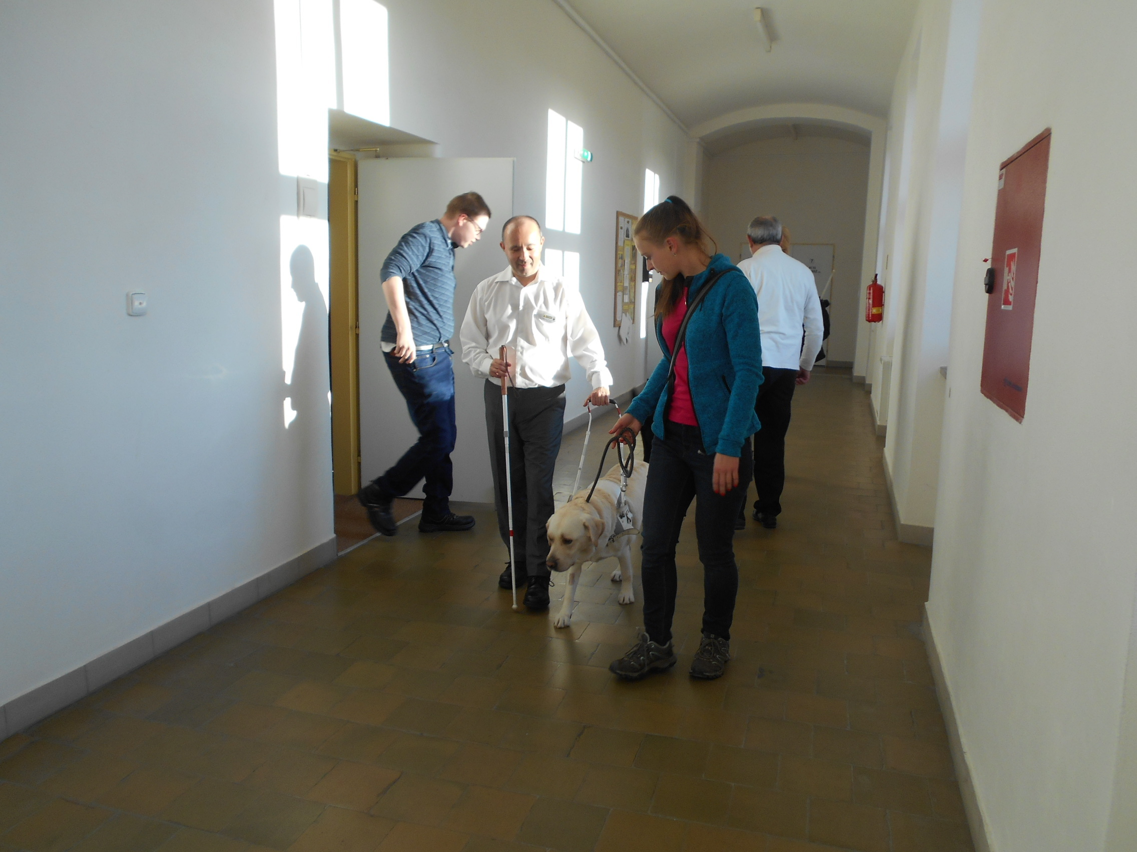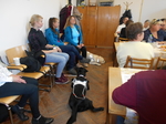 Po oficiální části programu a vystoupení hostů se nám představily pracovnice Střediska výcviku vodících psů Jinonice provozovaného SONS ČR, z.s. i se svými čtyřnohými svěřenci, povyprávěly o své práci a odpovídaly na otázky týkající se výběru, výchovy a výcviku vodících psů a péči o ně. Naši členové měli také možnost vyzkoušet si osobně práci s vodícími psy v terénu.
