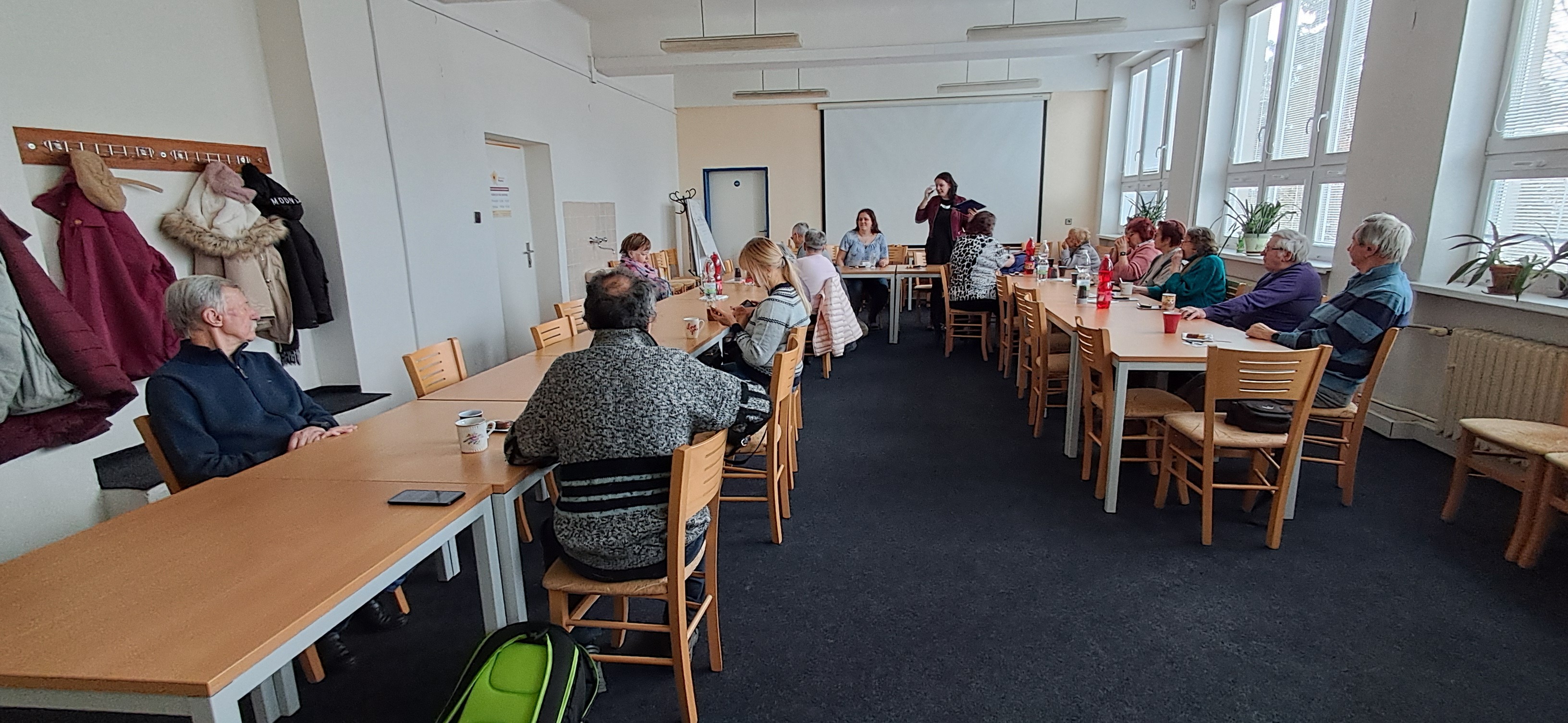 Po nějaké době jsme se opět shromáždili. První naše větší akce se uskutečnila v prostorách bývalé základní školy, kde sídlí naše odbočka v pondělí 17. února 2025. Bylo docela s podivem, že se nás sešlo skoro třicet, i přes ledovější počasí s teplotami pod nulou. Část přítomných patřila k pěveckému sboru Fit Senior, a tak jsme měli v druhé části programu postaráno i o milé hudební rozptýlení.