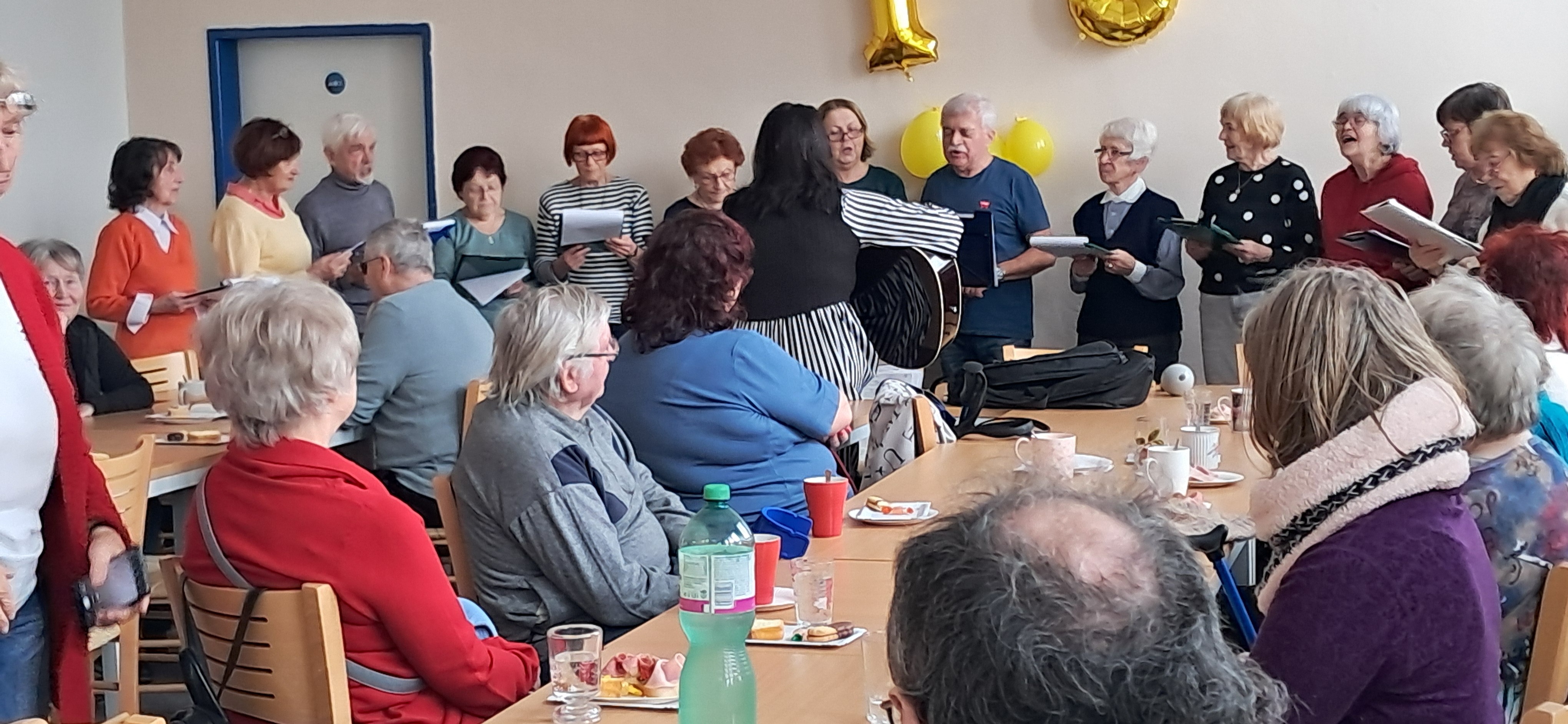 Po nějaké době jsme se opět shromáždili. První naše větší akce se uskutečnila v prostorách bývalé základní školy, kde sídlí naše odbočka v pondělí 16. února 2026. Bylo docela s podivem, že se nás sešlo bezmála třicet, i přes ledovější počasí s teplotami pod nulou. Část přítomných patřila k pěveckému sboru Fit Senior, a tak jsme měli v druhé části programu postaráno i o milé hudební rozptýlení.