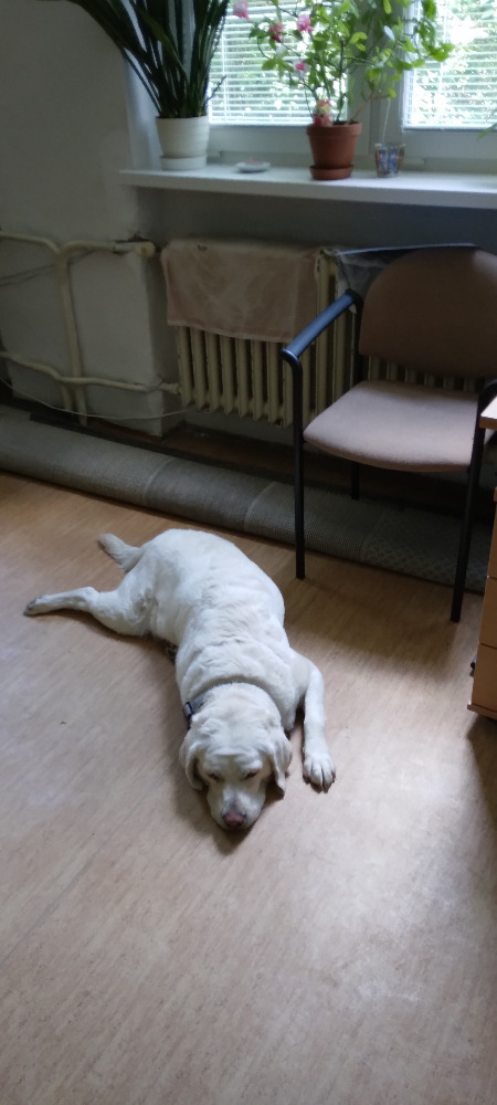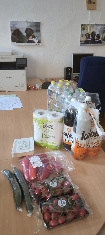 Přítomni bývají i psi, většinou vodící. Bohužel jsme při přípravě občerstvení zjistili, že Prada, která chodí s Andreou ráda soutěží. Možná to o ní víte, že se občas umístí v nejrůznějších soutěžích. No a u nás trénuje na to, jak rychle se dá vdechnout jídlo. Protože ona nic nekouše, rovnou to nasaje, zatváří se spokojeně a pak to vyzvrací. Takhle se připravuje o patky z rajčat, patky veky a salátové okurky. To může.