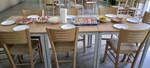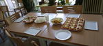 Venku sedíme spíše podle počasí. Pokud je větší teplo jako letos, nedá se tam zalézt do stínu. Pokud je ale zase polojasno jako minulý rok, dají se čekat přeháňky s deštěm. Uklízet narychlo stoly a občerstvení se nám pochopitelně nechce, takže jsme rádi za kompromis přízemí, větráku a otevřených dveří, jak je ostatně poznat i z přiložených fotek.