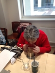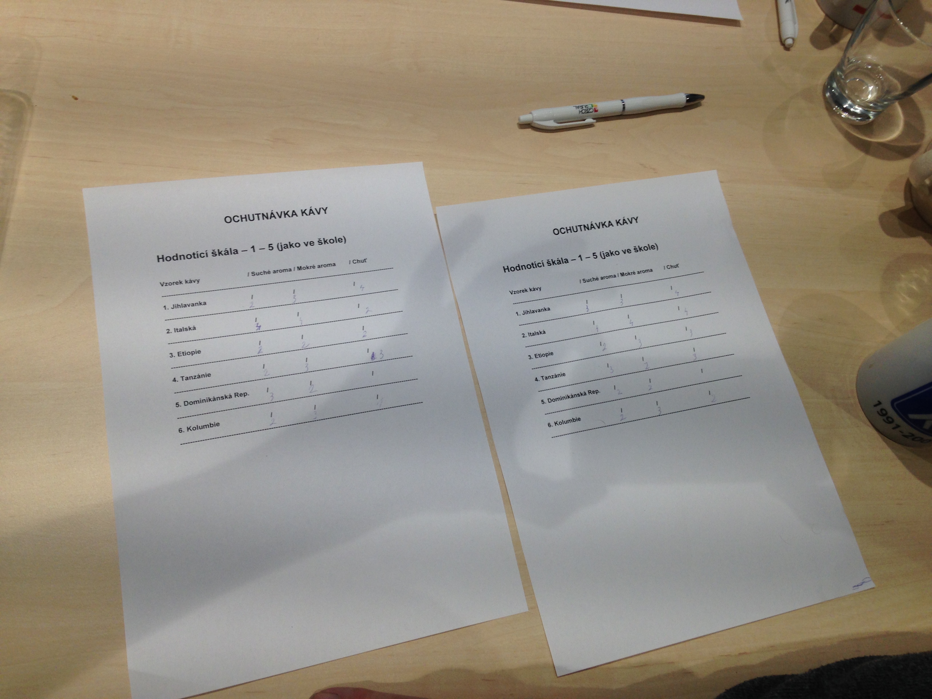 Po obědě v pondělí sešli jsme se u kávy. Hanka a Jiří si připravili celkem 6 vzorků kávy z Evropy, Afriky a Latinské Ameriky. Před každého byl postaven prázdný hrnek se lžičkou a sklenice vody. K tomu jsme obdrželi hodnotící kartičku v bodovém nebo tištěném písmu. Hanka poslala na ukázku zrníčka vybraného vzorku a následně kávu namlela. My jsme pak čichem hodnotili tzv. suché aroma. Hodnotící škála byla od 1 do 5, jako ve škole. Poté se namletý vzorek zalil vodou a my jsme opět čichem hodnotili tzv. mokré aroma. Zde se již objevily zajímavé rozdíly. Káva, která za sucha nádherně voněla, za mokra ztratila svou přitažlivou vůni. Nakonec byla káva uzavřena v tzv. frenchpress překapávači, a asi po 4 minutách jsme mohli ochutnat připravenou kávu. Každý do hrnečku dostal jenom malý vzorek. Za hlasitého srkání (tak je to správně) jsme vnímali rozdílné tóny chutí v ústech a zároveň zvažovali, jaké hodnocení přiřadíme. Emilka si pro nás připravila zajímavý článek o tom, jak se káva dostala do českých zemí. Jiří už pak dodával informace známé i neznámé, o tom, kde a jak se káva pěstuje, jak se připravuje a jaké jsou nejnovější výsledky vědeckých studií na téma káva a zdraví. Na konci nám Hanka nalila kávu dle svého výběru a my jsme měli hádat, o jaký vzorek se jedná. Že to byla Jihlavanka poznali, Alenka, Jana a Jarda. A jak dopadlo naše hodnocení kávy? Nejlépe nám čerstvě namletá voněla káva z Tanzanie (známka 1,6) a nejméně nás nadchla vůně Italské (známka 3,1). Po zalití namleté kávy nám nejvíce zavoněla káva z Dominikánské republiky (známka 2,0) a na posledním místě se opět umístila Italská (známka 3,0). Svou chutí nás nejvíce oslovila káva z Kolumbie (známka 1,4) a chuťově se na poslední příčce překvapivě ocitla káva Italská (známka 3,0). To nejdůležitější však nebyl výsledek hodnotící ankety, ale fakt, že jsme se dobře bavili a zajímavé nápoje k tomu popili. A co budeme ochutnávat příště? Nechte se překvapit.