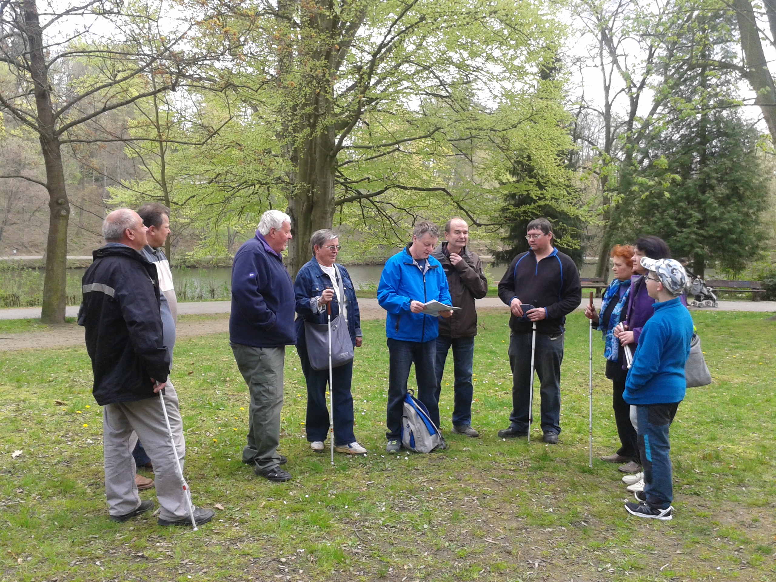 Když se naše „hůlkové komando“ poprvé vydalo do ulic Havlíčkova Brodu a postávali jsme u Hnátova kamene na mostě přes řeku Sázavu, byla to ještě akce nanečisto. Připravil ji právě Mirek a už mu ta funkce zůstala. Podruhé jsme lovili při putování po sochách Michala Olšiaka, v překrásné přírodě kolem Žďáru nad Sázavou.