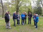 Poté jsme vykročili směrem na horní konec náměstí, kde bylo naše úsilí korunováno úspěchem v podobě další objevené, nenápadné skrýše s pokladem. Objevila ji šikovně hmatající Hana Fikarová. Opět razítko, datum a čas, ať na náš účet něco přibude! Pokračovali jsme do parku za kostelem. Najednou jsme se dostali mimo ruch a shon centra, procházeli jsme se pěšinkami mezi svěže zelenou plochou trávníku a krásně nám k tomu prozpěvovali ptáci, usazení ve větvích stromů.