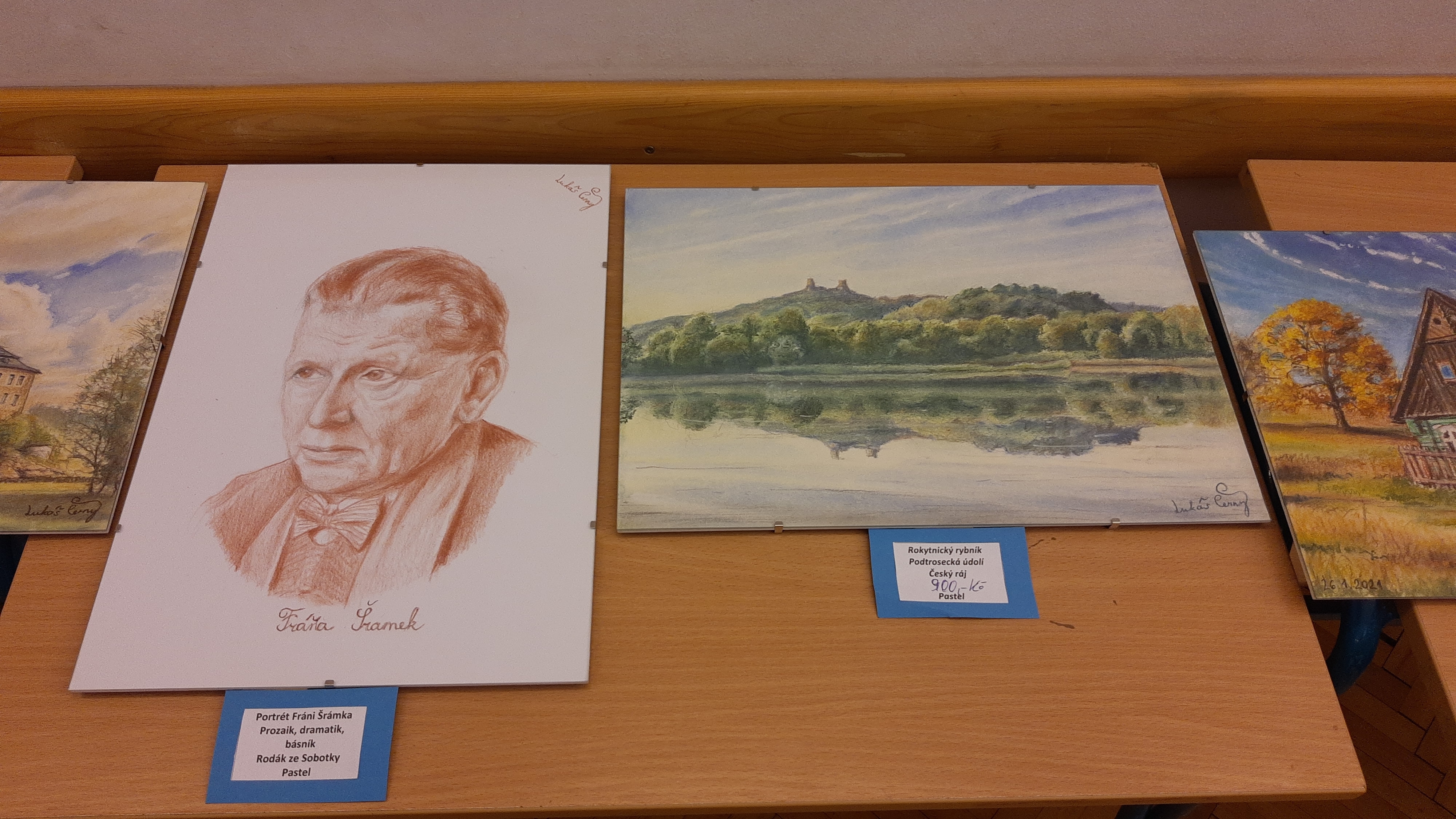 Od 13 hodin byla zahájena vernisáž slabozrakého malíře a našeho člena Lukáše Černého, který nám představil své obrazy.
