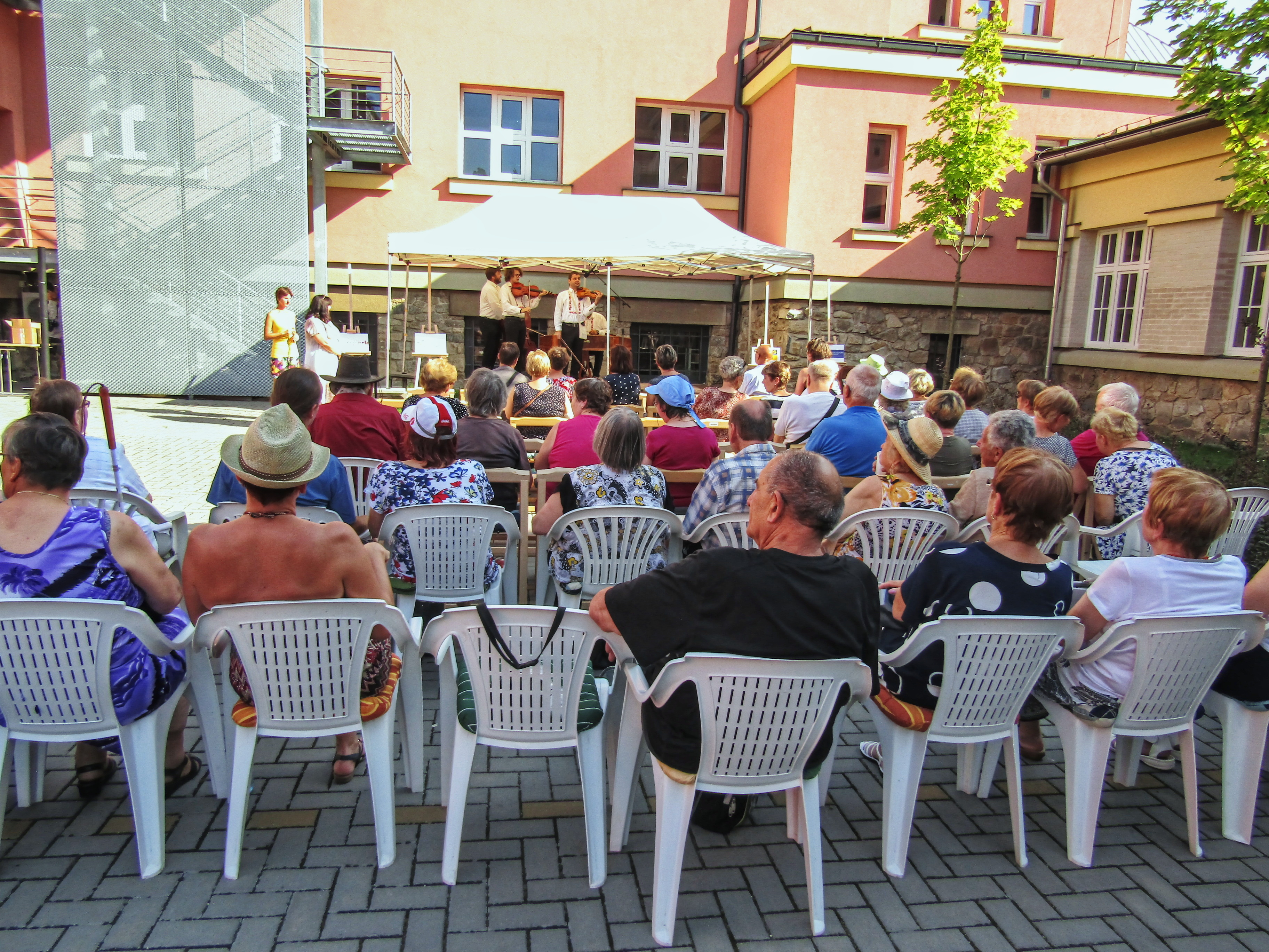 A letní aktivity nadále navazovaly jedna na druhou. Připomeneme si jen některé z nich. Po návratu z rekondice v Mohelnu jsme se vrhli do konečných příprav koncertu cimbálové muziky Falešnica, jež se konal u příležitosti festivalu Dny umění nevidomých na Moravě a opět ve spolupráci s šumperskou knihovnou. Počet návštěvníků koncertu ukázal, že cimbálovku mají nejen Šumperáci rádi. Pozvání přijal i starosta města Šumperk, zástupce Olomouckého kraje a řada našich sponzorů.