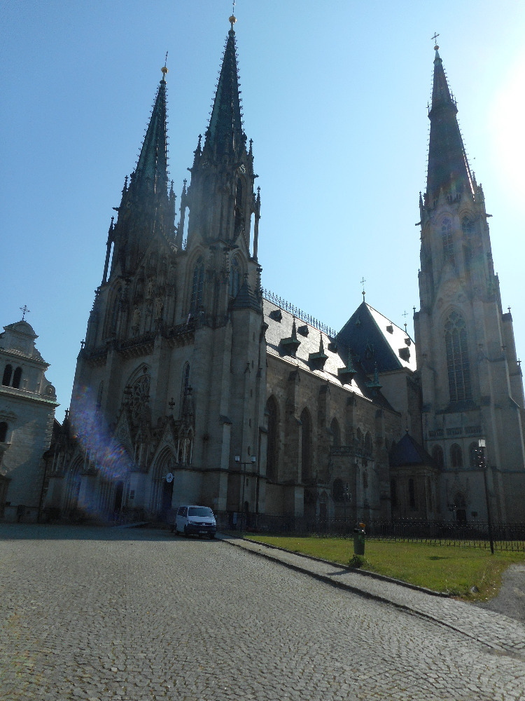 Olomouce. Její hlavní věž je vysoká 102 m. Stavba byla zahájena knížetem Svatoplukem