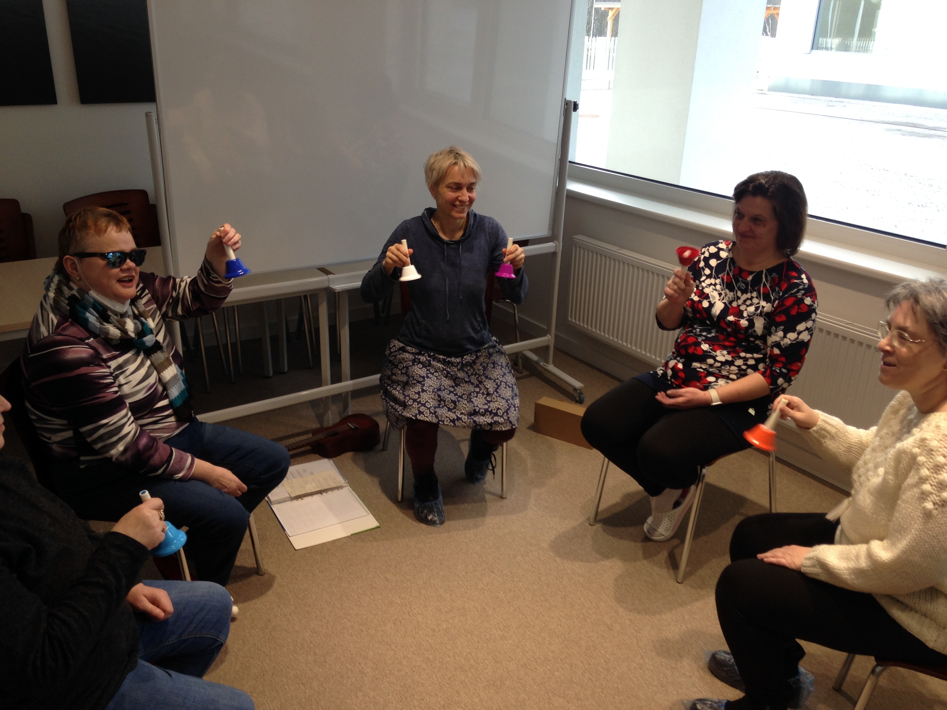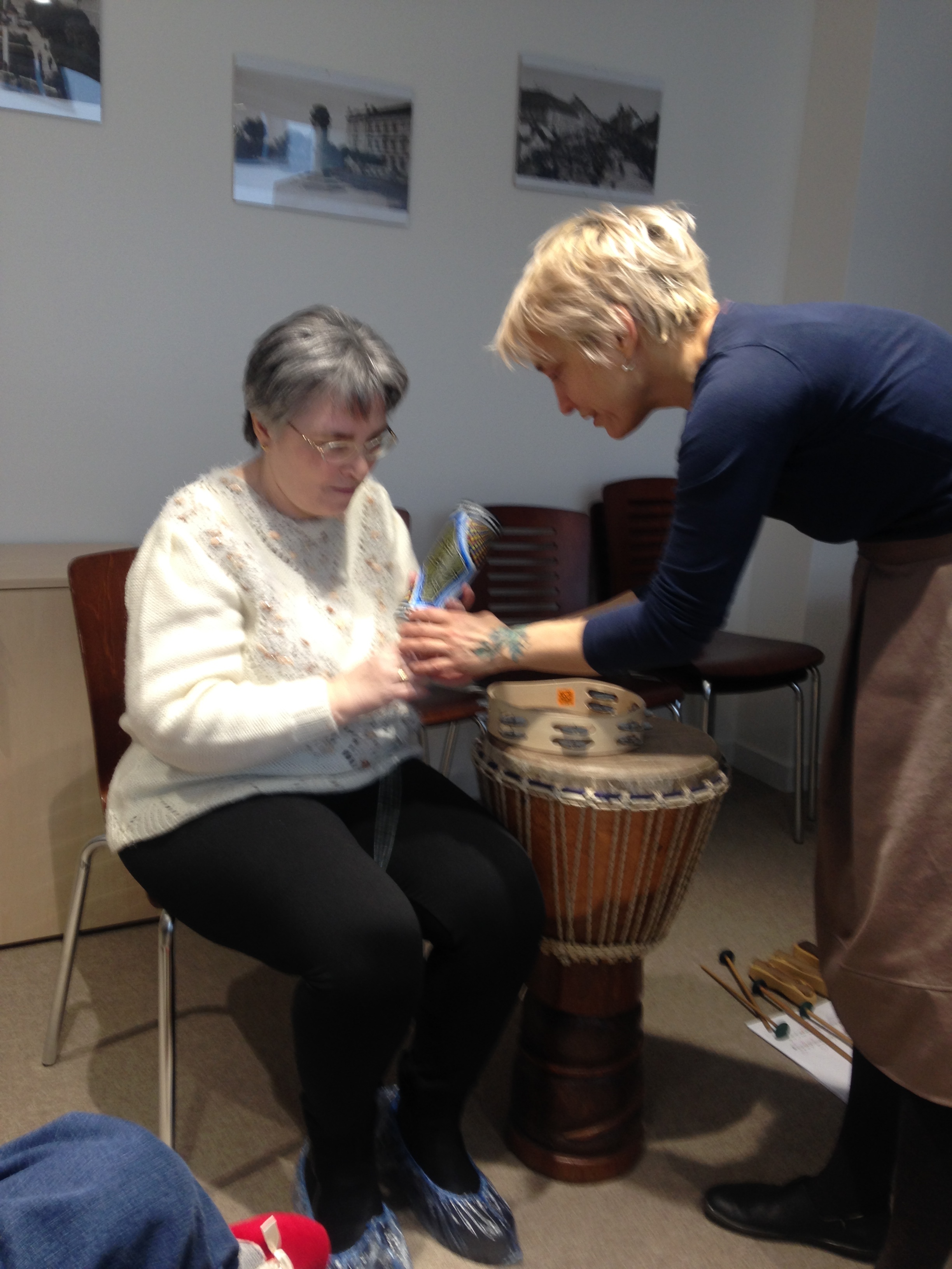 Zima ještě třímá v rukou žezlo a sluníčko za mraky úspěšně zahání. My ale již víme, jak se dostat do pohody a do harmonie. S hudbou přichází ta pravá terapie. Pravidelný kurz muzikoterapie jsme opět zahájily malou rozcvičkou dýchacích cviků. Účastnice byly nadšené, neboť si zkoušely opět nové nástroje, které se používají spíše při divadle či zhudebňování různých textů. Například jsme si mohly vyzkoušet nástroje, které představovaly zvuk bouřky, větru a sloního mláděte. Na dnešní hodině jsme si vyzkoušely píseň "Na kopečku stála, plakala" což je čardáš. Také jsme si zazpívaly píseň, kterou jsme se učily minule a to píseň - Ocho kandelikas, což je stará židovská píseň ve staro - španělštině. Také jsme spolu s lektorkou zkoušely zhudebnit dva příběhy. Pověděly jsme si krátký příběh k jednotlivým kartám a pak k nim vybíraly vhodné nástroje a za pomocí nich a zvuku zkusily vytvořit správnou atmosféru příběhu. Dámy byly velice nadšené a již se těší na příští setkání.