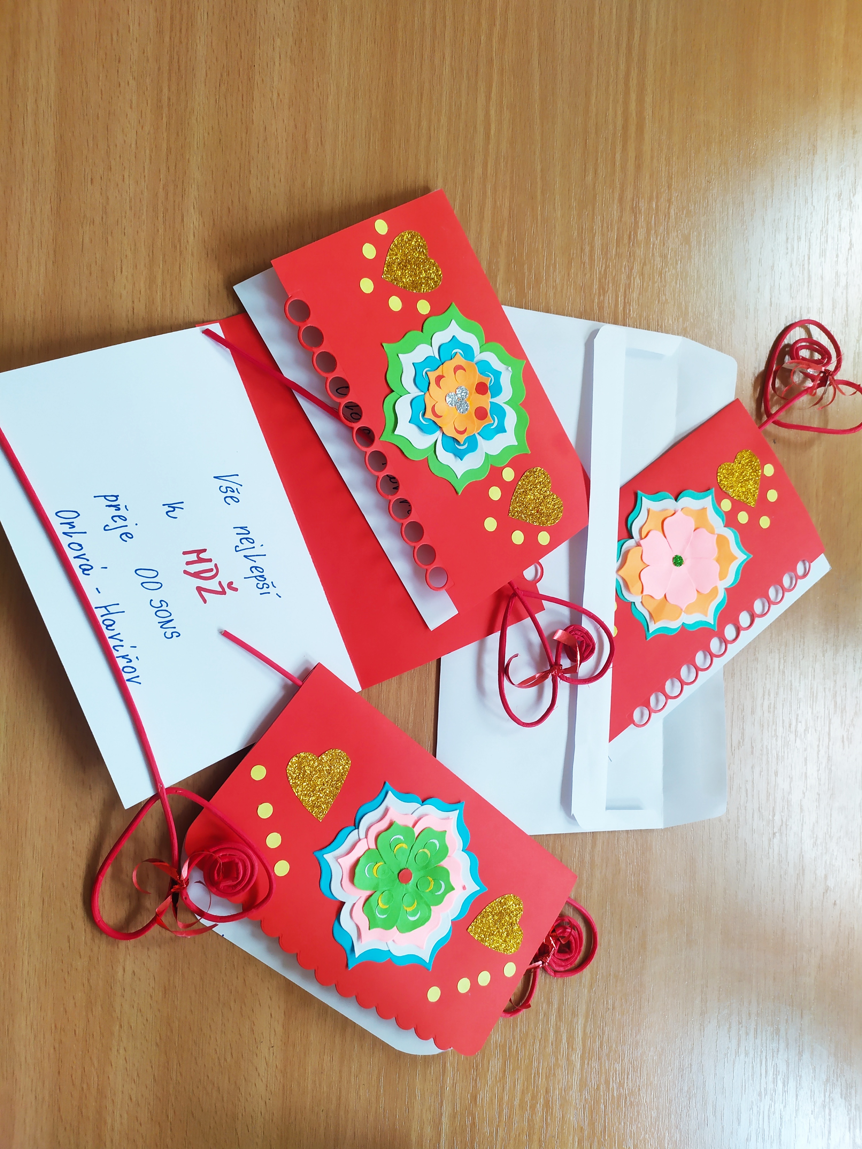 Na kroužku "šikovné ruce" naše členka vytvořila krásné přáníčka k MDŽ a na kroužku "vaření" jsme upekly na to posezení i ten dobrý zákusek :)