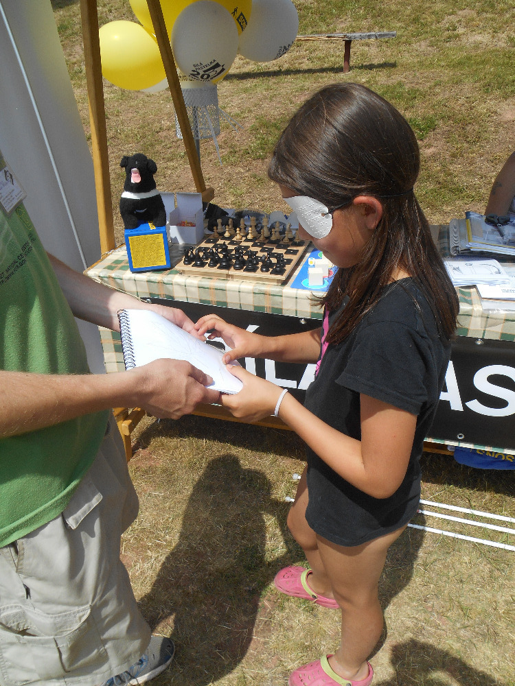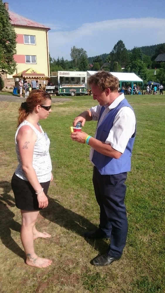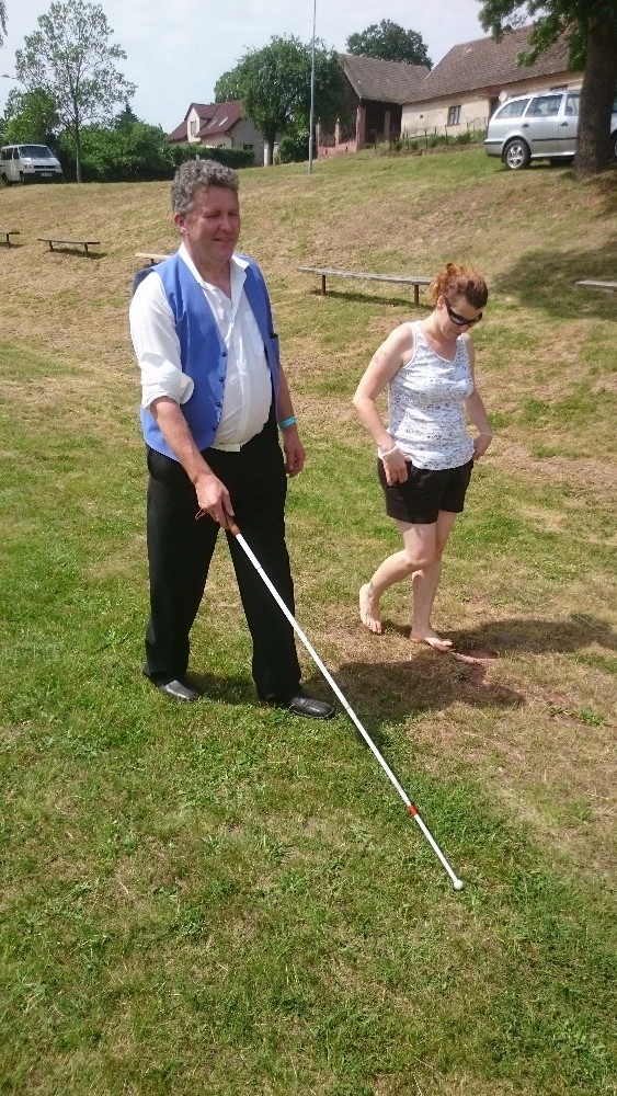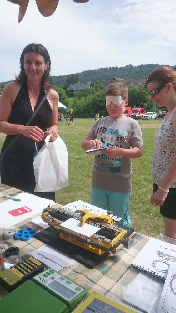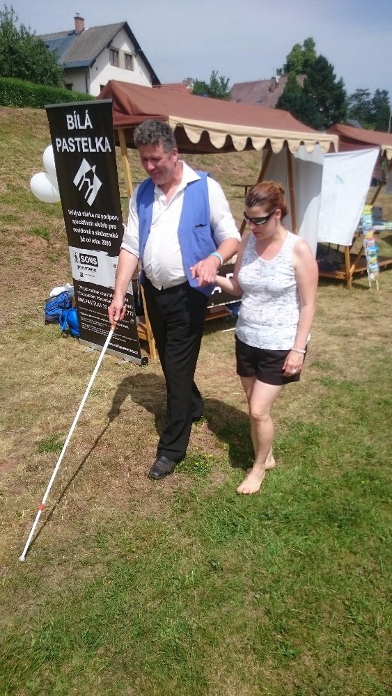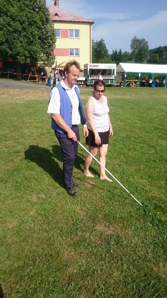 Vyrazit na tuto akci s naším stánkem jsme se rozhodli opravdu na poslední chvíli a pan starosta Ladislav Jiřička podpořil naši snahu. Touto cestou bychom mu chtěli ještě jednou poděkovat za jeho vstřícné jednání a zajištění stánku. Nutno podotknout, že tento den panovalo obrovské vedro, a to se podepsalo i na množství účastníků. Náš tým měl v rozpáleném stánku těžkou úlohu, ale prokázal odolnost a vydržel. I přes nepříliš přející podmínky nás navštívilo mnoho lidí, hlavně dětí. Ty měly možnost u nás jako vždy vyzkoušet hry pro nevidomé, což rády využily. Zejména zvukové pexeso, novinka v našem stánku, budila jejich zájem.